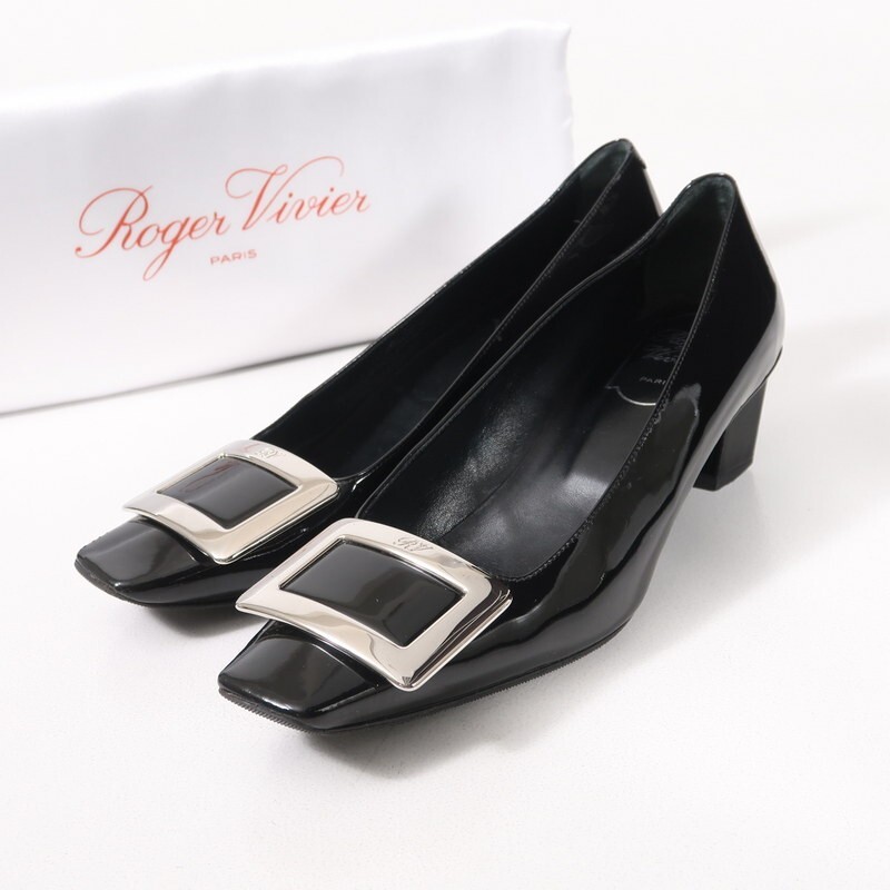 | GS5985▼イタリア製*ロジェヴィヴィエ Roger Vivier*Belle vivier スクエアバックル パテントレザー パンプス 36(23.5cm相当) 靴 ブラック | |||