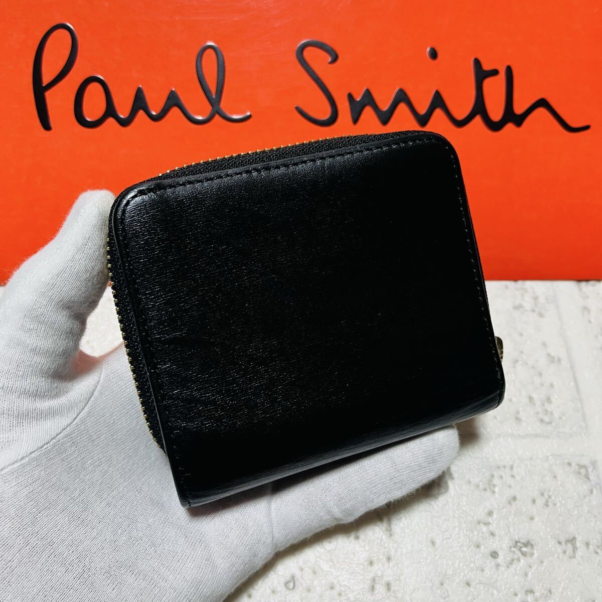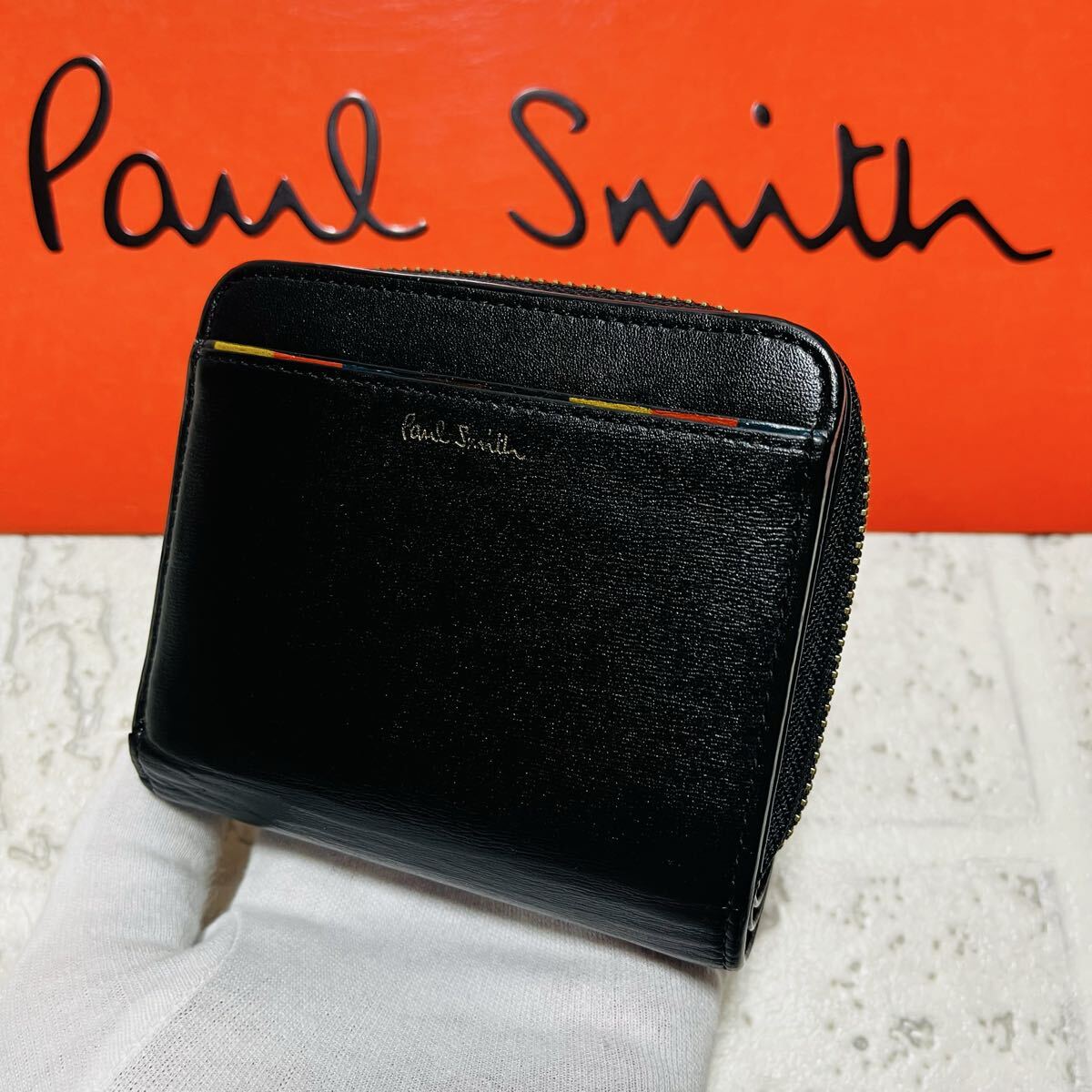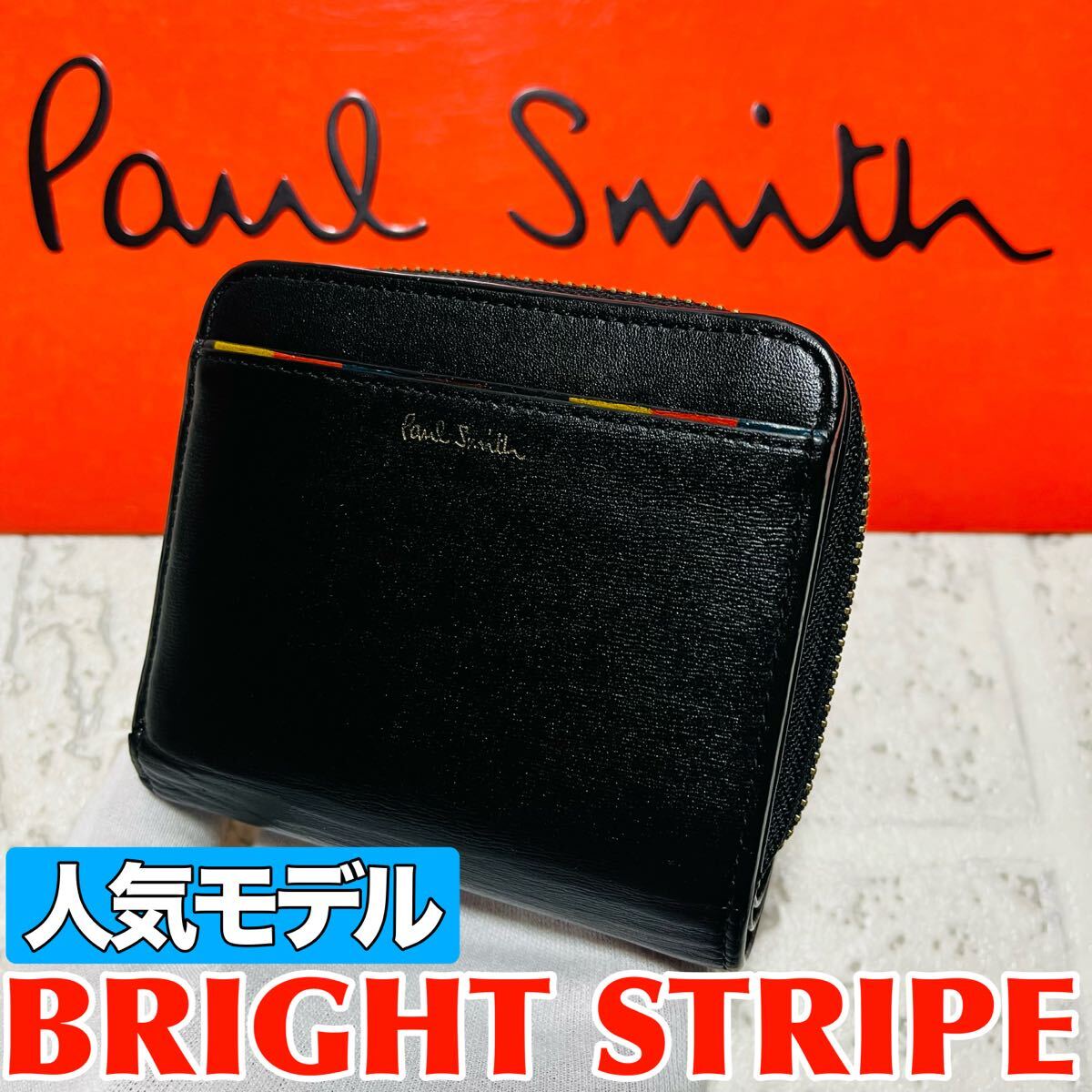 人気モデル ポールスミス PaulSmith ブライトストライプトリム 二つ折り財布 コンパクトウォレット ラウンドファスナー ブラック P072 メンズ レディース ユニセックス 9316