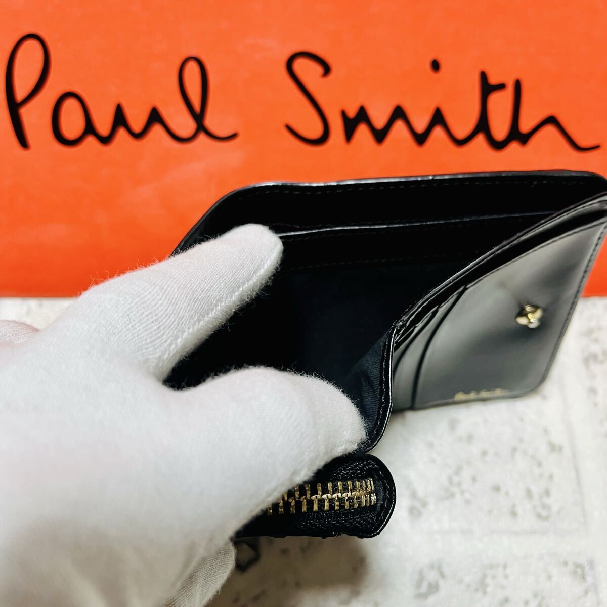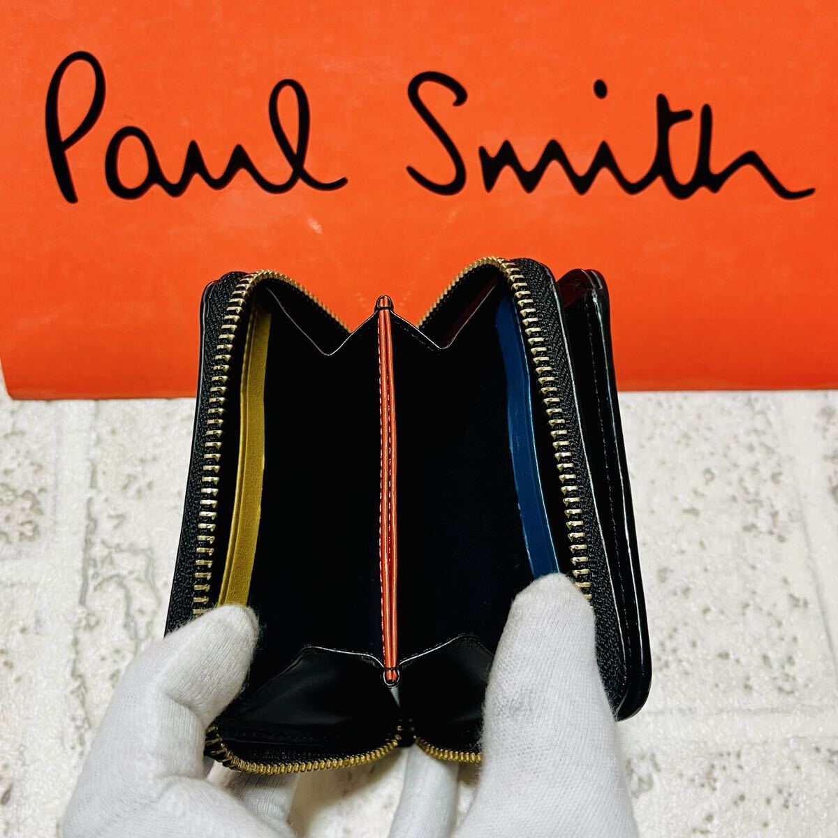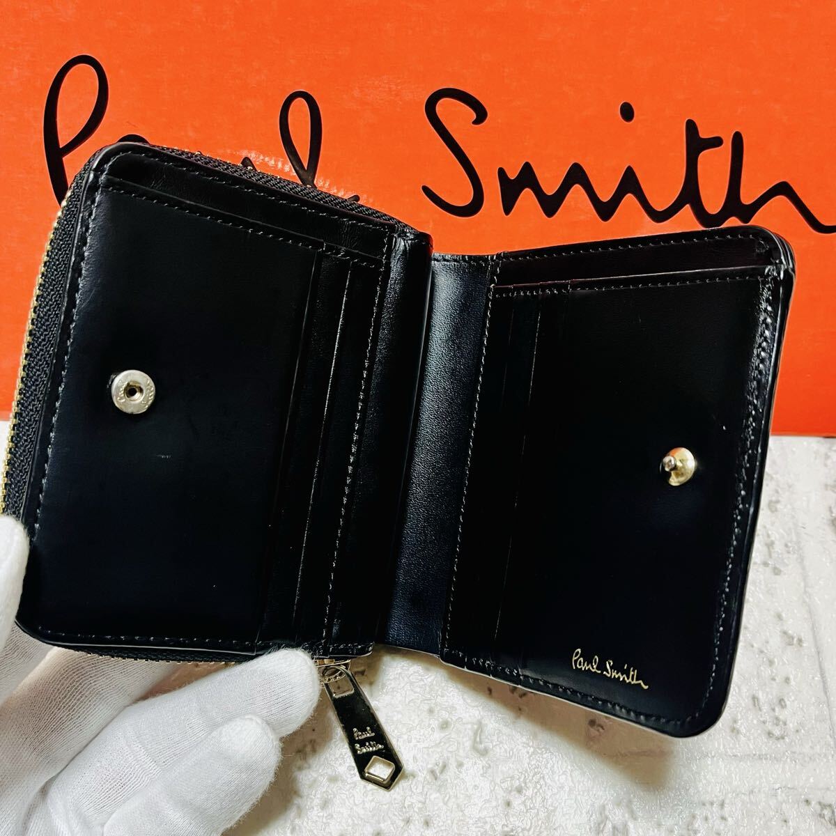 人気モデル ポールスミス PaulSmith ブライトストライプトリム 二つ折り財布 コンパクトウォレット ラウンドファスナー ブラック P072 メンズ レディース ユニセックス 9316