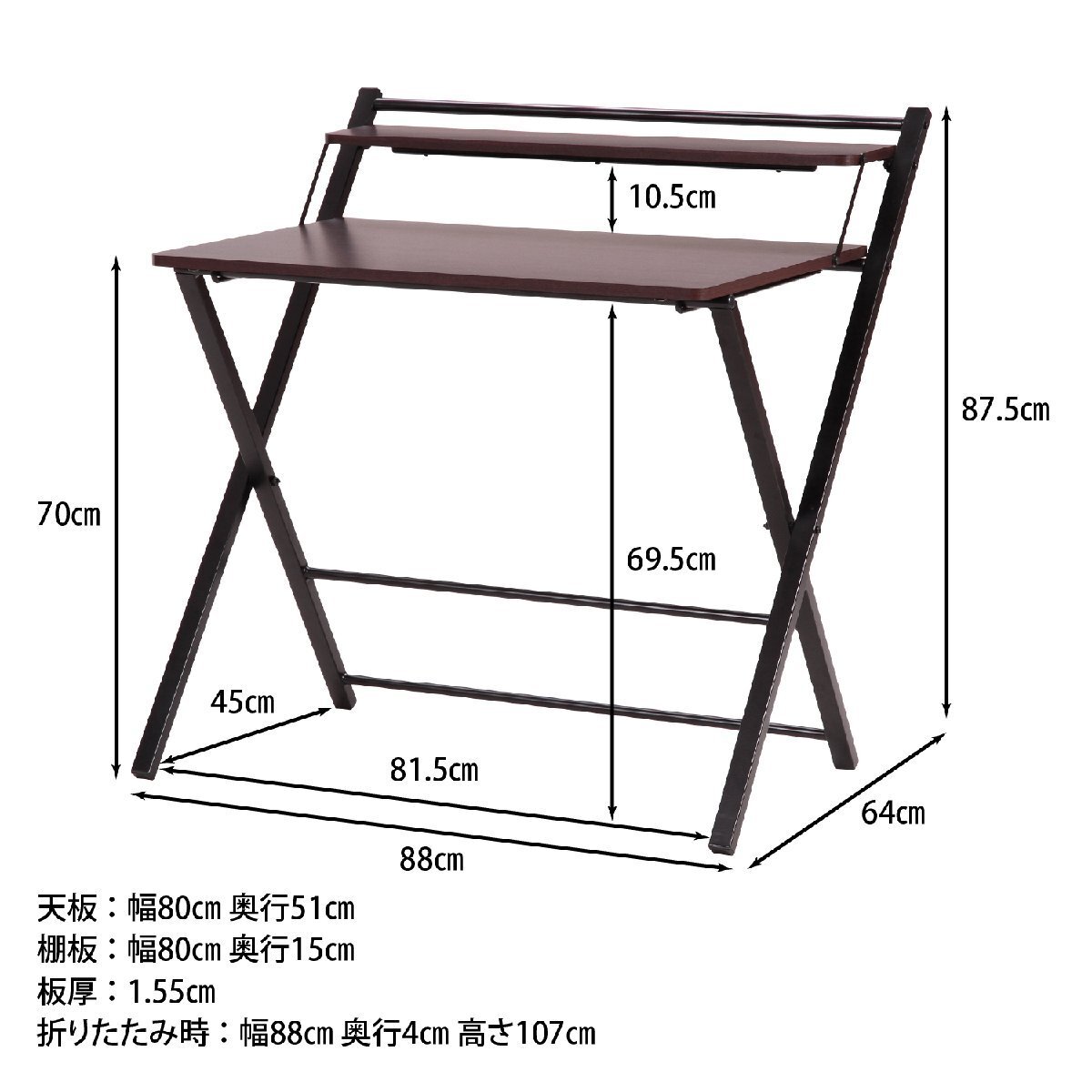 | サイズ | 全体:幅880 × 奥行640 × 高さ875mm 耐荷重(天板):20kg 耐荷重(棚板):1kg 天板サイズ:800x510mm 上棚サイズ:800x150mm 折りたたみサイズ:880x40x1070mm ※サイズ詳細はサイズ画像をご参照ください。 |
