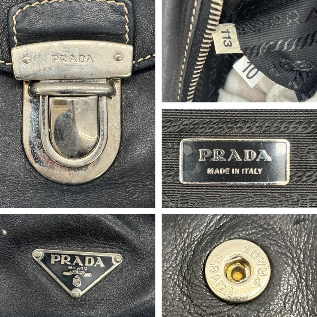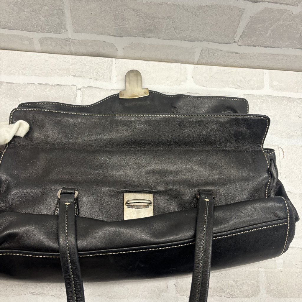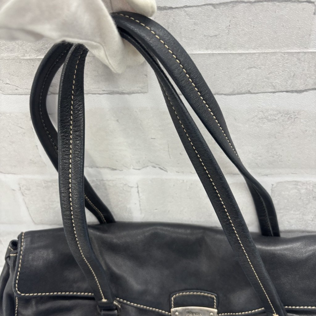 ◎PRADA プラダ ハンドバッグ レザー 三角プレート ブラック系 黒 レディース メンズ TW214674