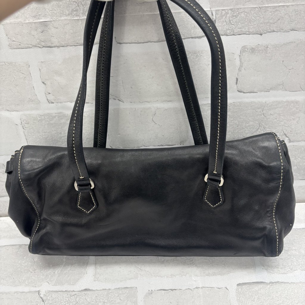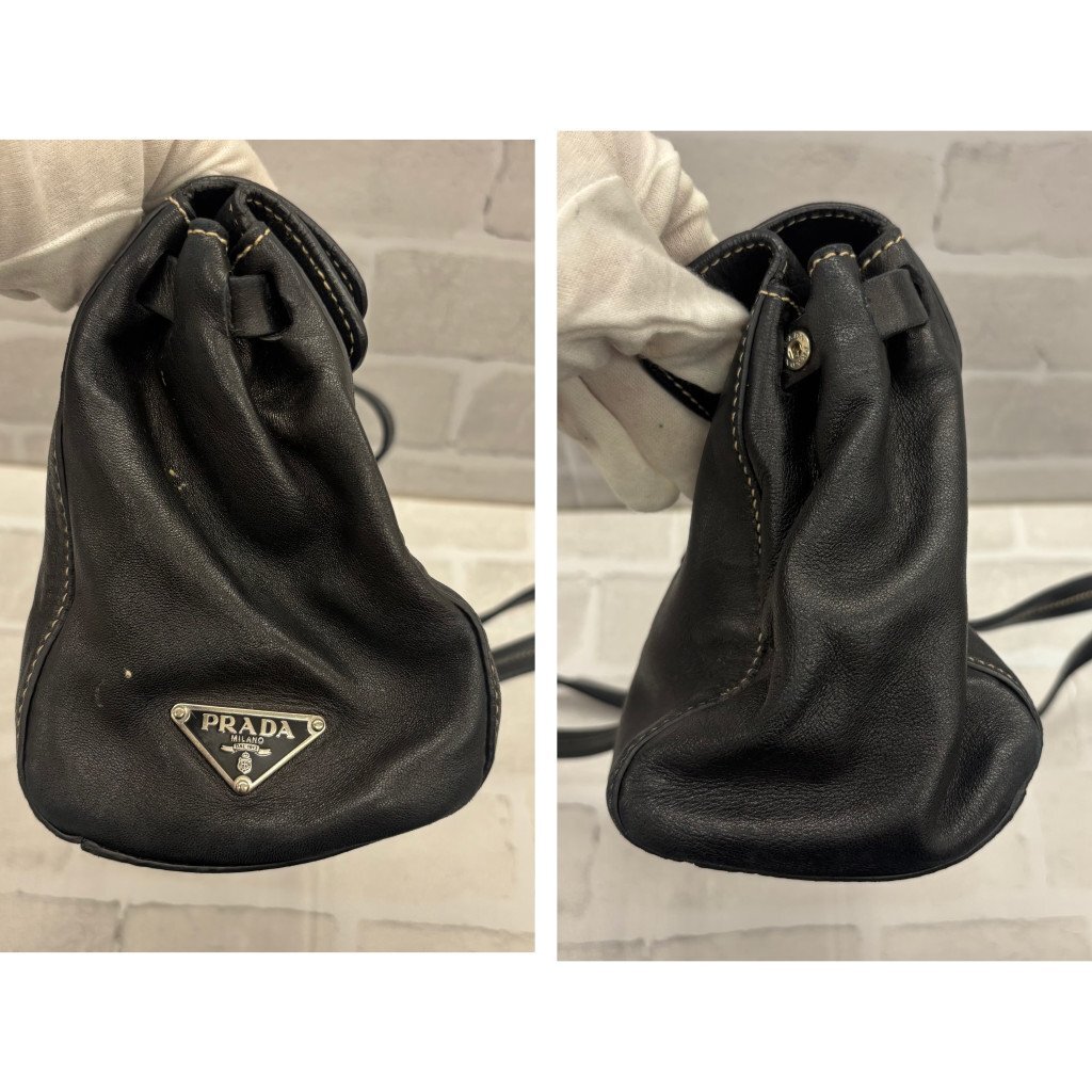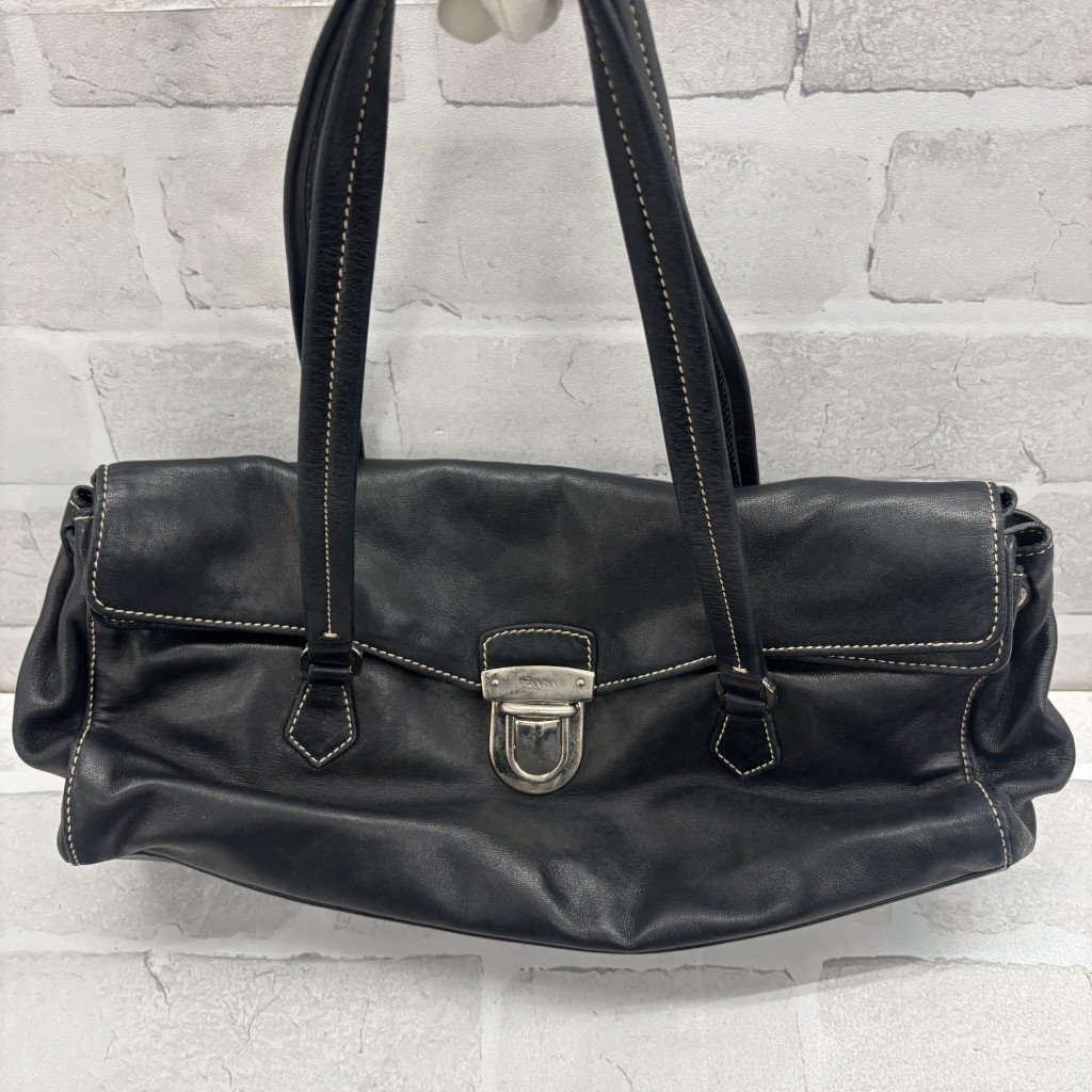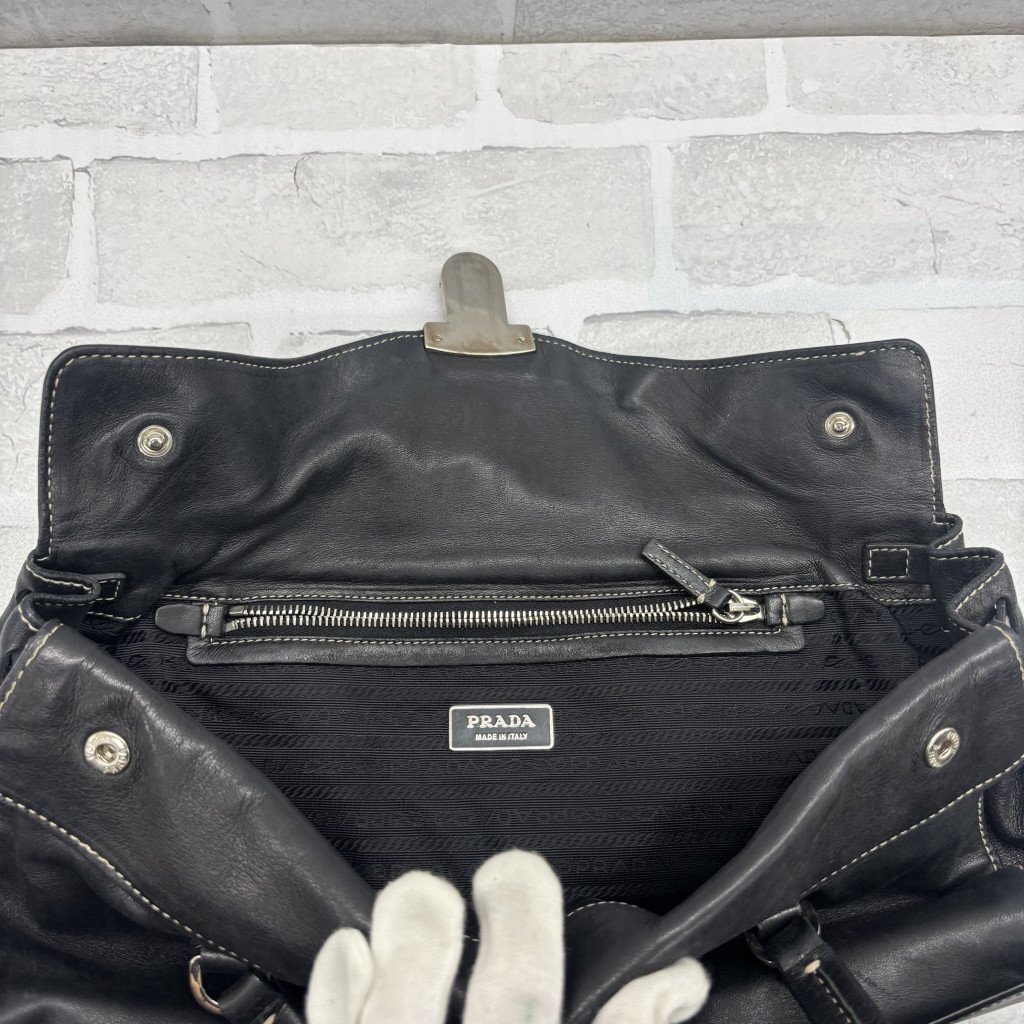 ◎PRADA プラダ ハンドバッグ レザー 三角プレート ブラック系 黒 レディース メンズ TW214674