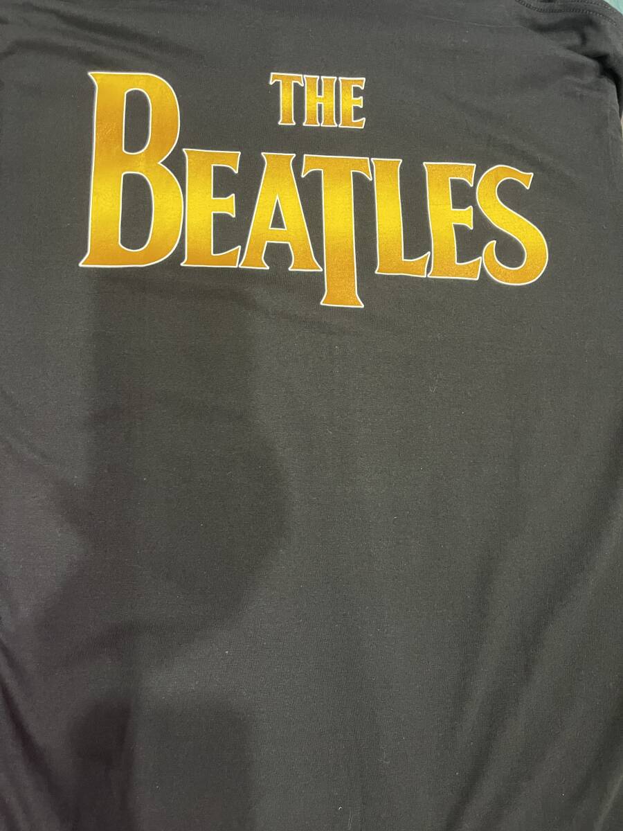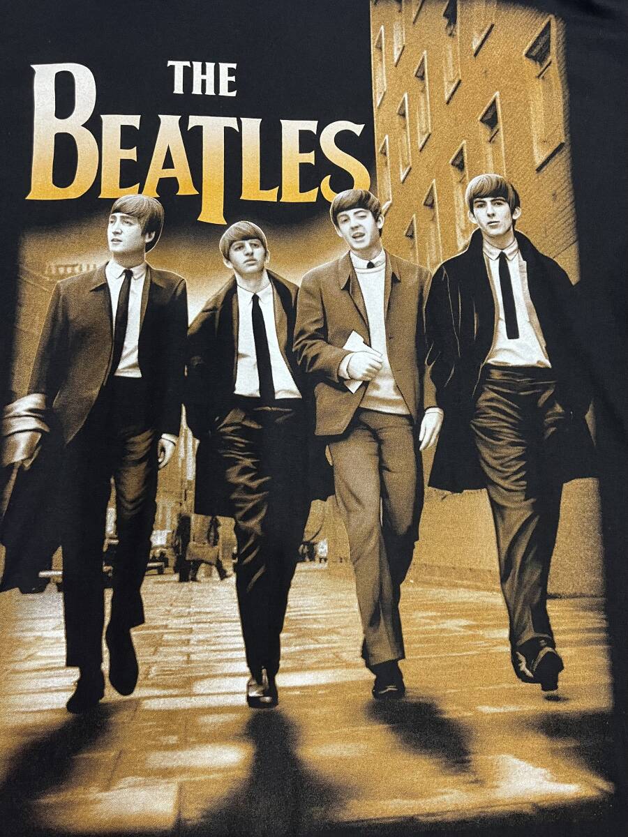 フロントはメンバーのフォトプリント、バック&両袖には大きく「THE BEATLES」のロゴが入った豪華仕様。1枚で存在感抜群のロックTです。