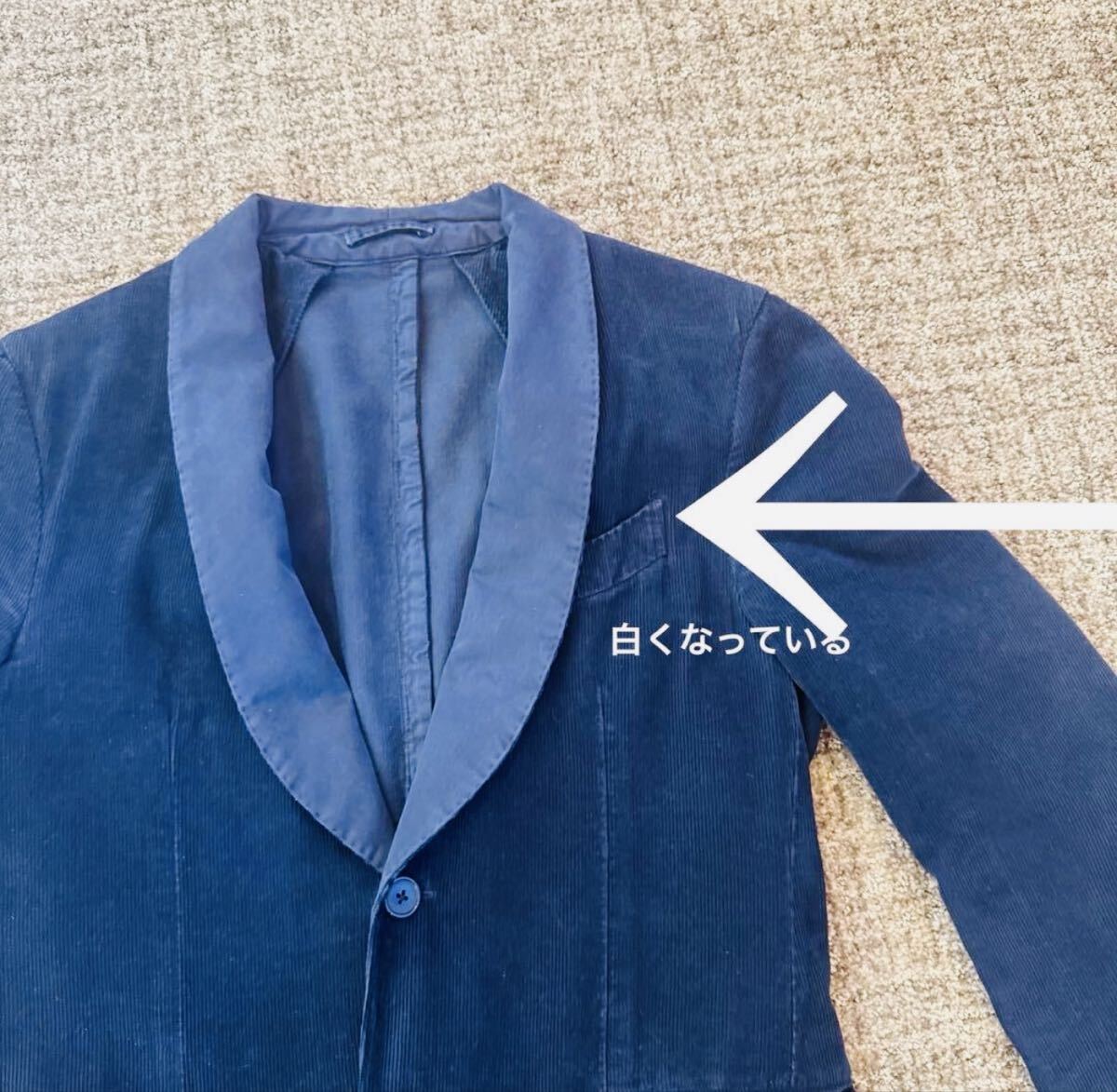 ショールカラーのコーデュロイジャケット、フォーマルと