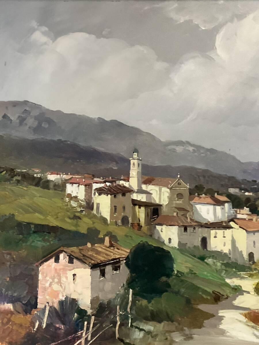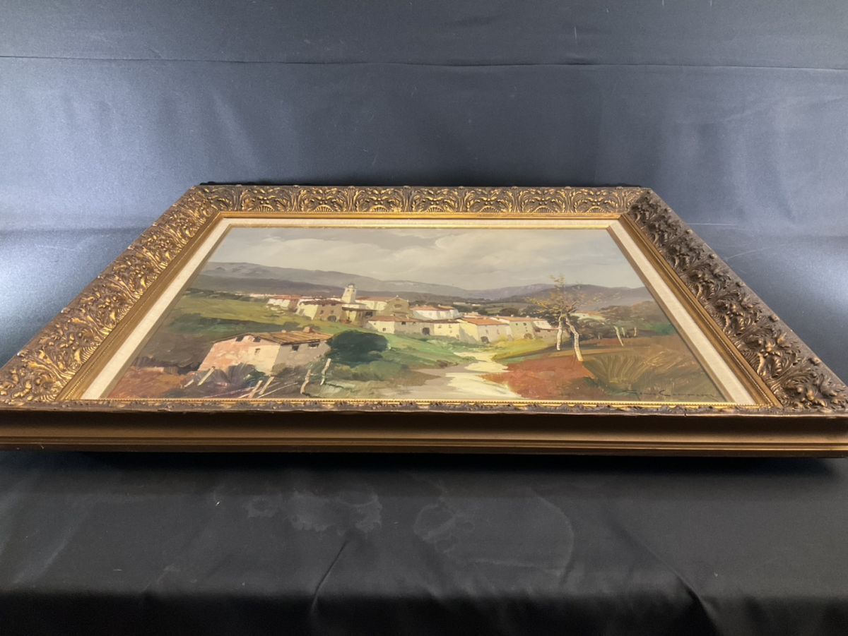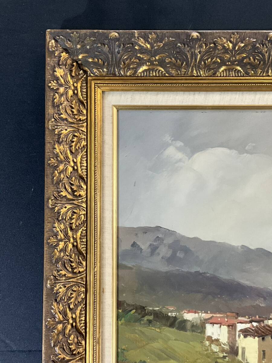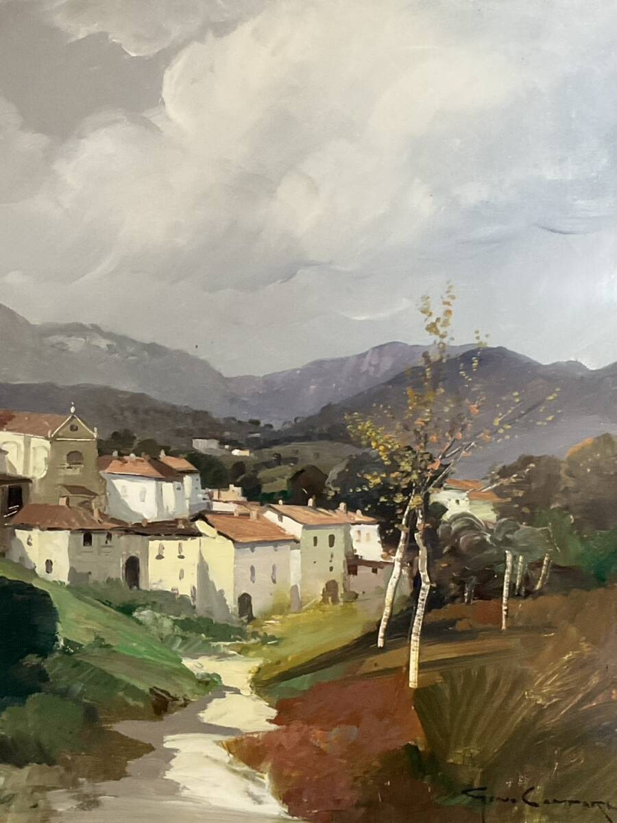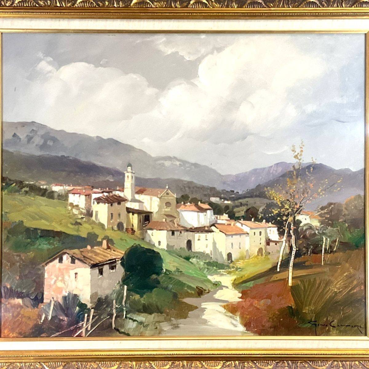 真作■油彩■ カンパリ GinoCampari ■『谷の村』■20F■大型・美しい逸品■額付絵画
