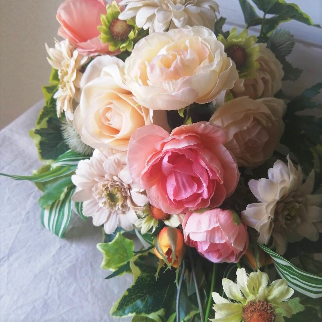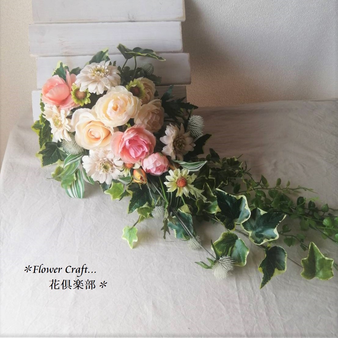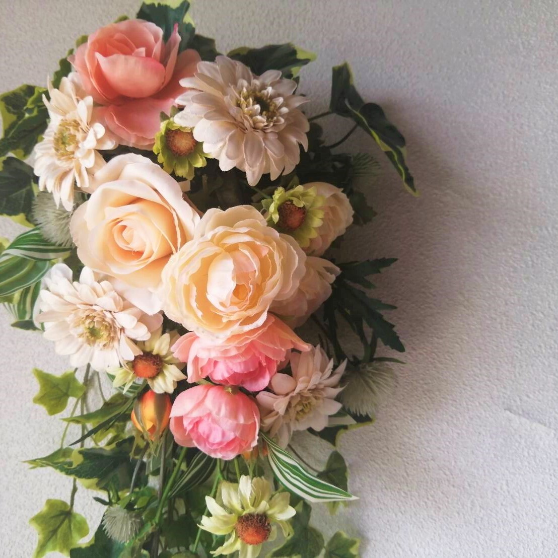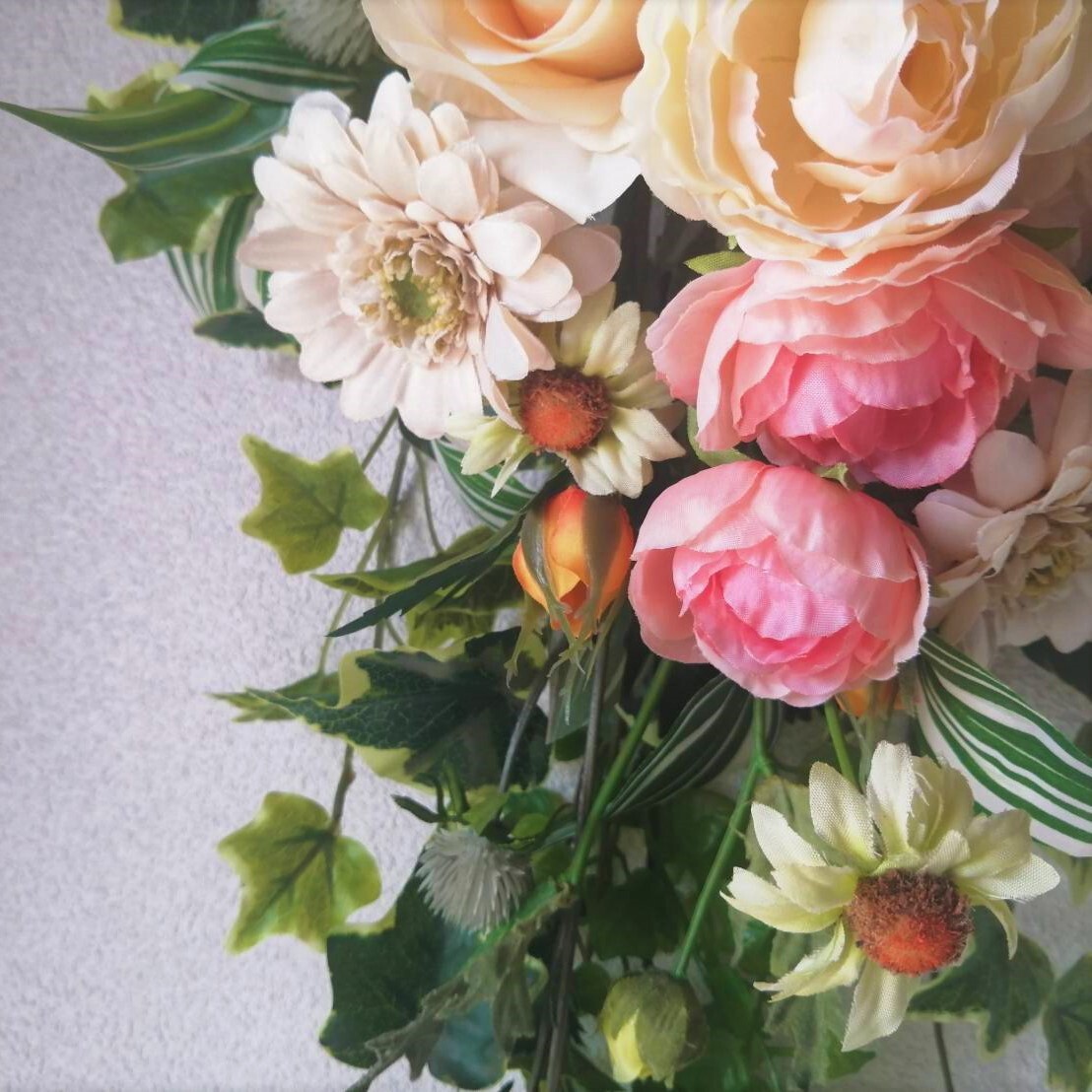 | * 花倶楽部 * 造花壁掛けリース・壁掛けアレンジ ✿…お祝いにも花倶楽部のお花を…✿ ずっときれいに咲いているアーティフィシャルフラワー(造花)の壁掛けです。 ふんわりラナンキュラスとベージュのガーベラの壁掛けです。 長さ70cmの縦に長い作品です。 お好きなところへ飾って特別な空間をお楽しみください。 気に入っていただければうれしいです。 裏側に壁掛け用の輪をワイヤーで作ってあります。 大事な方へのプレゼントにも♪ 【 サイズ 】 横幅 22cm 長さ 70cm 厚み 13cm ◇毎日きれいに咲いている造花のリース・壁掛けはギフトにもお勧めです。華やかな空間作りにどうぞ◇ ご自宅用に、プレゼントに、ご利用ください♪ ** プレゼントラッピング・メッセージカードも無料でお付けできます** お買い上げ前に、ご不明なこと等、 どうぞお気軽にお問い合わせください。 ◆発送について 透明のラッピングフィルムで包んでから、プチプチの梱包材で包み 段ボールに入れて丁寧に梱包して、お届け致します。 発送の手配は月~金曜日の平日となります。 (土・日・祝日は原則、休みですが、お急ぎの方はどうぞ、ご連絡くださいませ) ・宅配便はゆうパックで発送致します。 お届けの時間指定ができます。 午前中 12時頃~14時頃 14時頃~16時頃 16時頃~18時頃 18時頃~20時頃 19時頃~21時頃 20時頃~21時頃 ◆お花・花器の破損について 至急ご連絡をお願いします。 お客様のご負担にならないように 個別に善処させていただきます。 ◆返品交換について お客様のご都合の場合は、送料お客様負担で承ります。 到着より2日以内で至急、ご連絡をお願いいたします。 気持ちの良いスムーズなお取引に心がけますので、 どうぞよろしくお願いいたします。 |