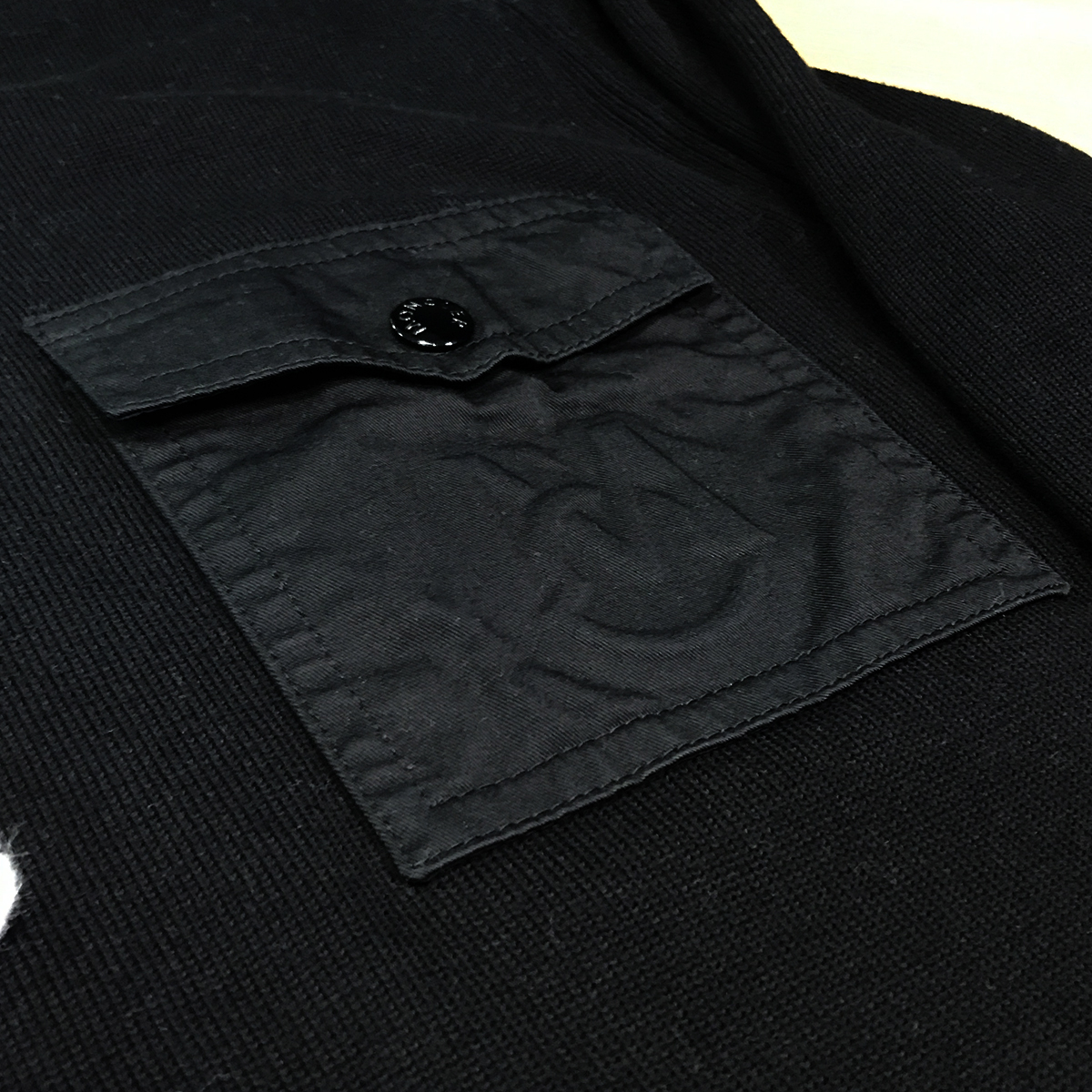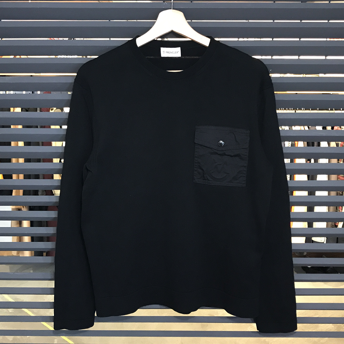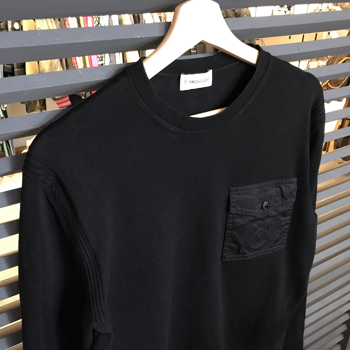 【超美品】モンクレール コットンニット セーター ブラック GIROCOLLO #S I10919C00017 黒 胸ポケットデザイン 14715
