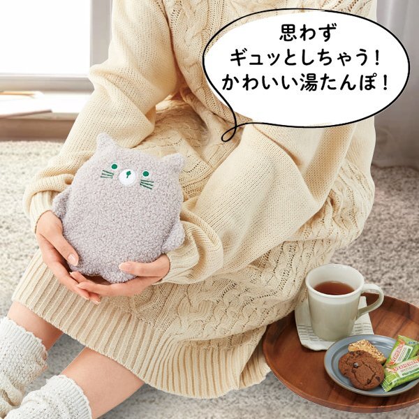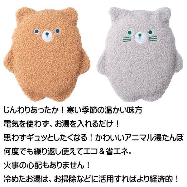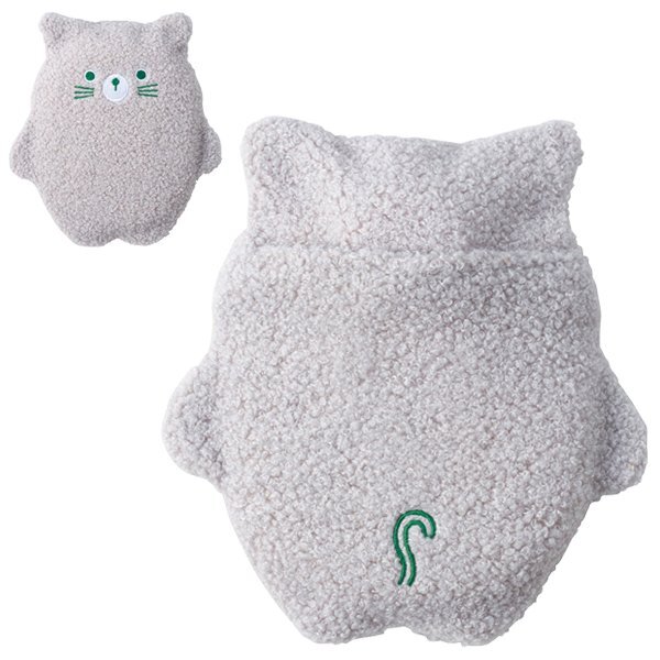 【ねこ】 湯たんぽ アニマル お湯 500ml カバー付 コードレス エコ あったか 節電 送料無料 7M◇ アニマル湯たんぽ:ネコ(グレー)