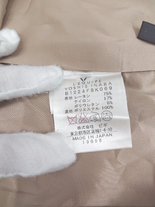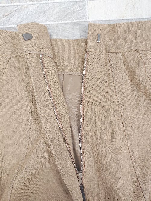 ◇ Θ L'EQUIPE レキップ ダブルジップアップ 膝下丈 タイト スカート サイズ38 ベージュ レディース E
