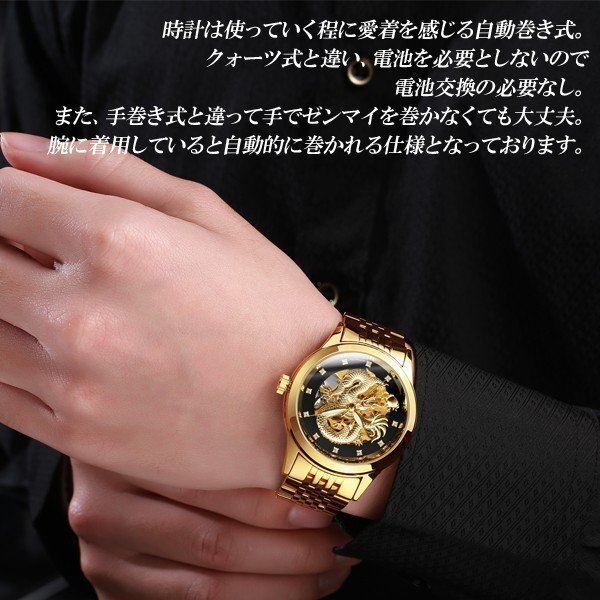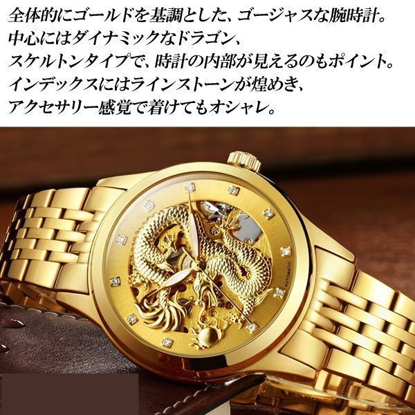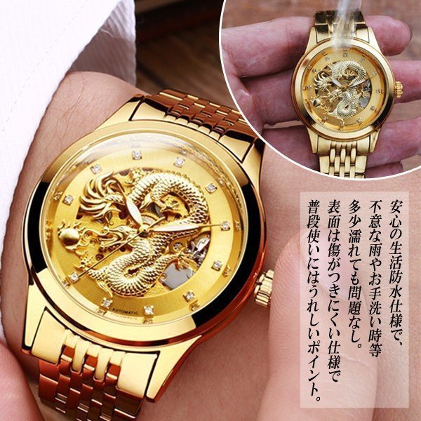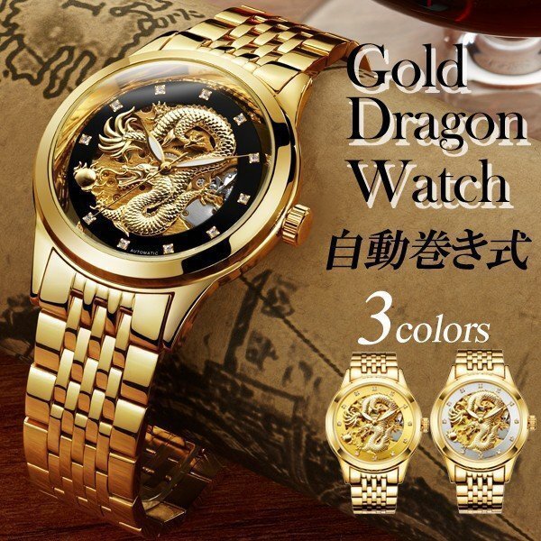 自動巻き式 生活防水 『 ゴールド ドラゴンウォッチ 』 金×銀 |