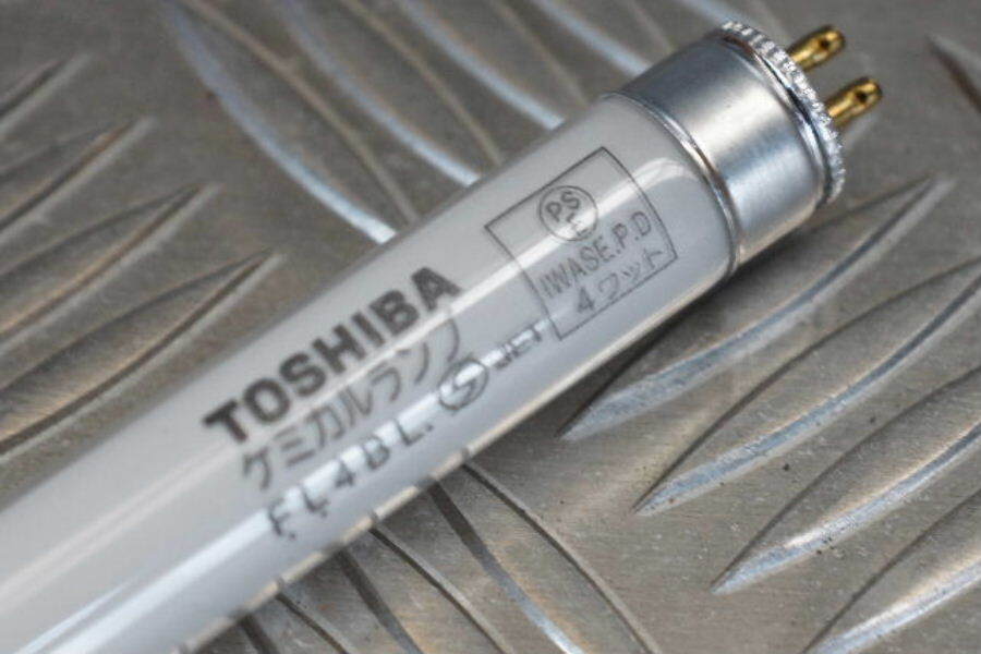 FL4BL 4W、光化学と蛍光作用のある近紫外線(ピーク波長352nm)を効率よく放射するランプです。
