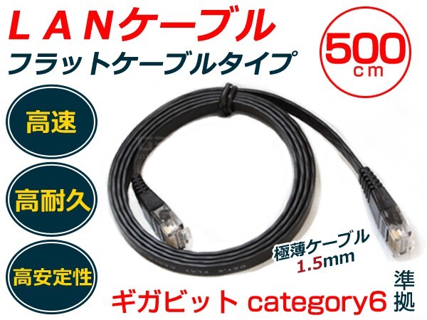 LANケーブル 5m カテゴリ6 フラットケーブル スリム 黒 【有線 ネット 配線 コード PC パソコン ノートパソコン プレステ PS3 TV