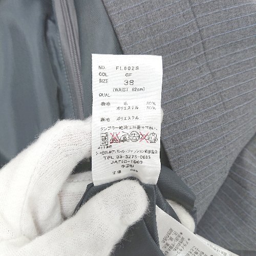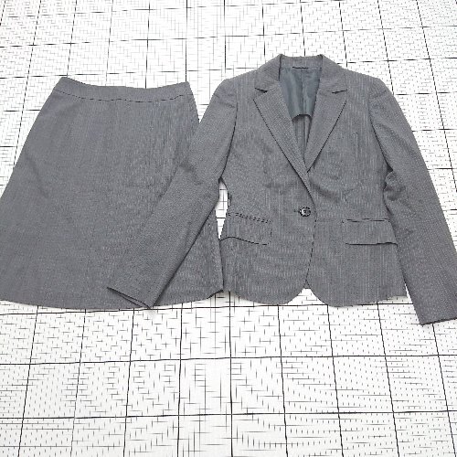◇ ⊂ ザスーツカンパニー ストライプ柄 ビジネス 膝丈 スカートスーツ サイズ38 グレー系 レディース E
