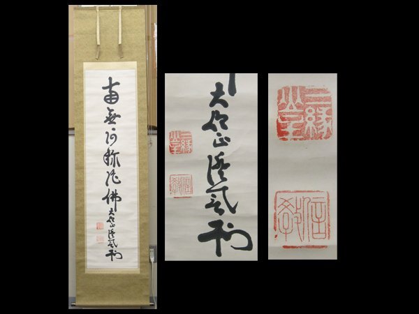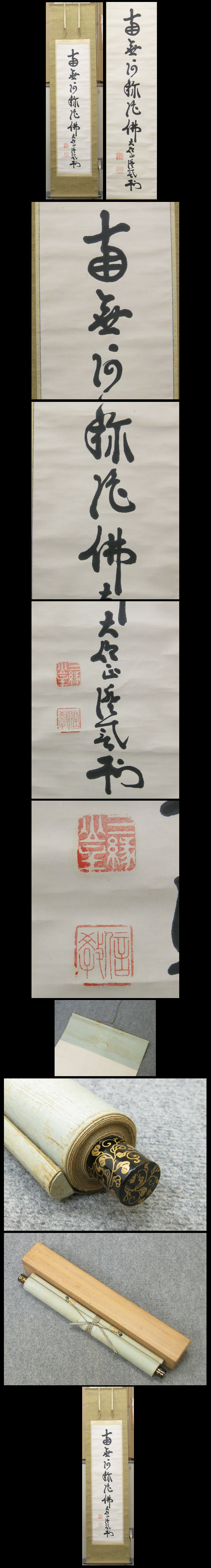 【道重信教】 1856-1934 明治-昭和時代前期の僧。 安政3年3月4日生まれ。浄土宗。山口講習所,知恩院大教院にまなぶ。 明治25年浄土宗学本校教授,大正12年増上寺法主。 在家信者への講義,ラジオでの法話など仏教の民衆化につとめた。 昭和9年1月29日死去。79歳。長門(山口県)出身。 ★商品サイズ★ ■掛軸 189×45.5cm ■作品 125×31.5cm ★商品の状態★ 作品にわずかなしみ汚れがあります。 裏側上部に時代のしみ汚れ、剥げがあります。 ご承知のうえご入札をお願いします。 時代など詳しくは画像にてよく確認のうえでご検討いただければと思います。 どうぞよろしくお願いいたします。 |