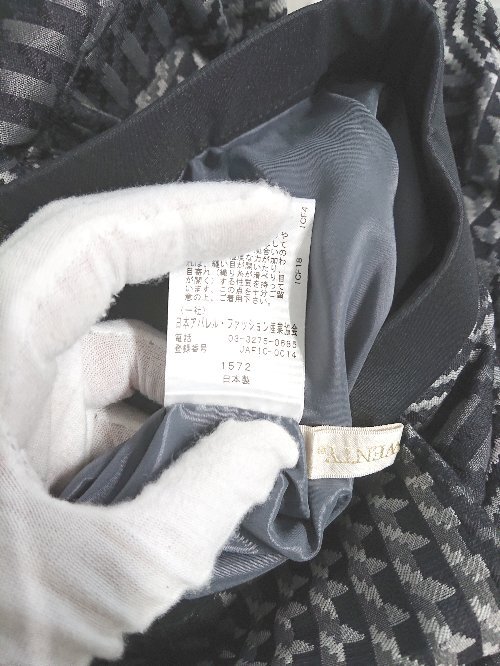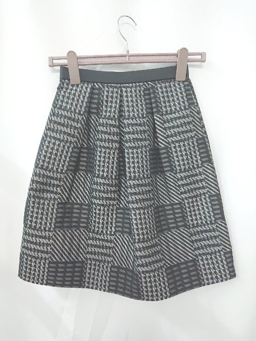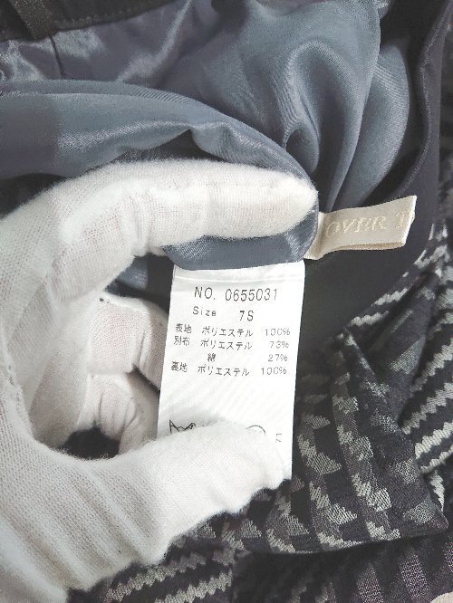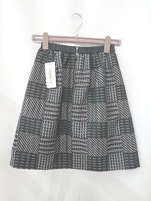 ◇ Θ 未使用 OVER TWENTY?オーバートゥエンティ チェック柄 膝丈 台形 スカート サイズ7S ブラック系 レディース E