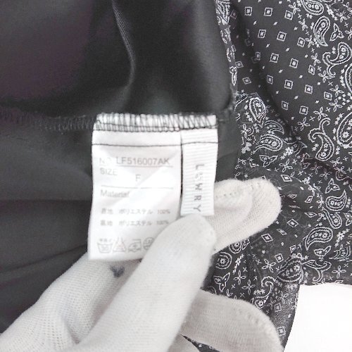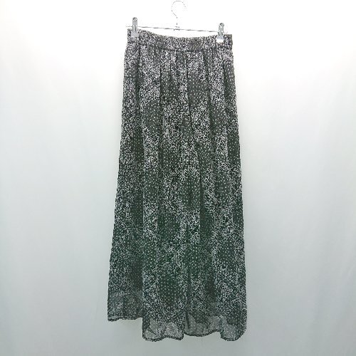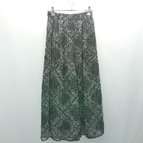 ◇ LOWRYS FARM バックウエストゴム ペイズリー柄 薄手 ロング フレア スカート サイズF ブラック レディース E