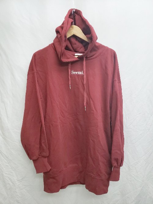 ◇ Θ Seemi.by NICE CLAUP ゆったり 長袖 ロング パーカー 表記なし ワインレッド系 レディース P