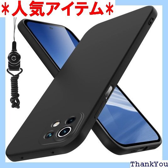 Xiaomi Mi 11 Lite 5G ケース 耐衝撃 シリコン 薄型 スリム Mi 11 Lite 5G カバー tpu 磨り表面 指紋防止 柔らかい裏地 ネックストラップ米軍MIL規格 ワイヤレス充電対応ストラップホール付き 黄ばみなし レンズ保護 滑り止め 柔軟 擦り傷防止 黒N409-A11 Lite-01 249