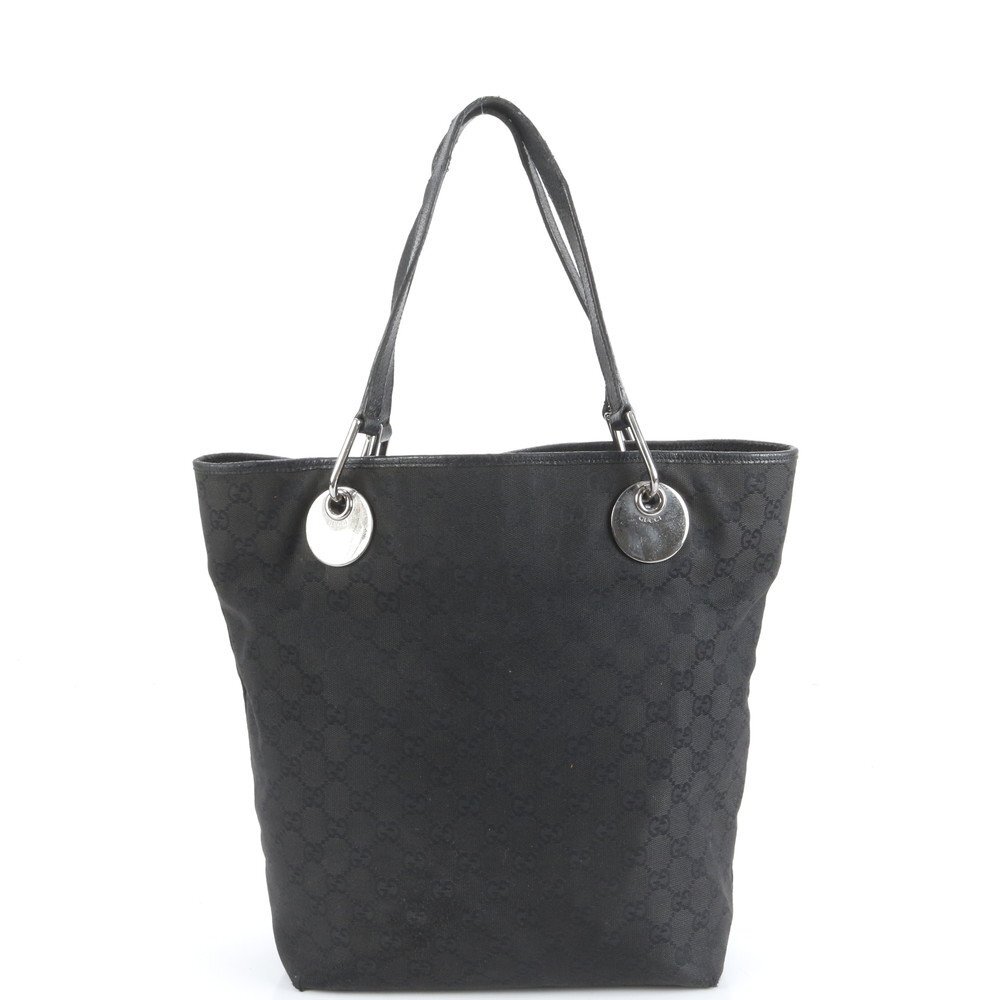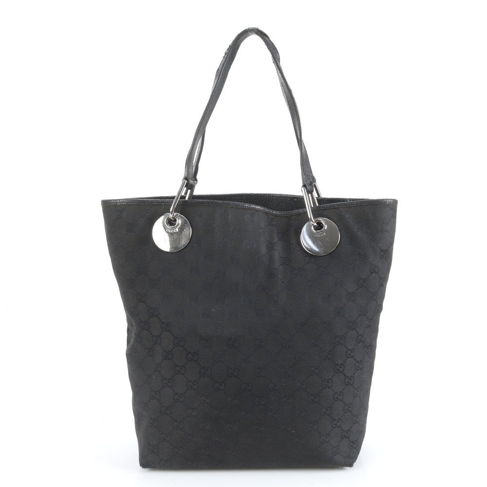 ■美品■グッチ■GG キャンバス エクリプス レザー トート バッグ 肩掛け ショルダー 120836 ハンド ブラック 黒 レディース ECE DB44-3