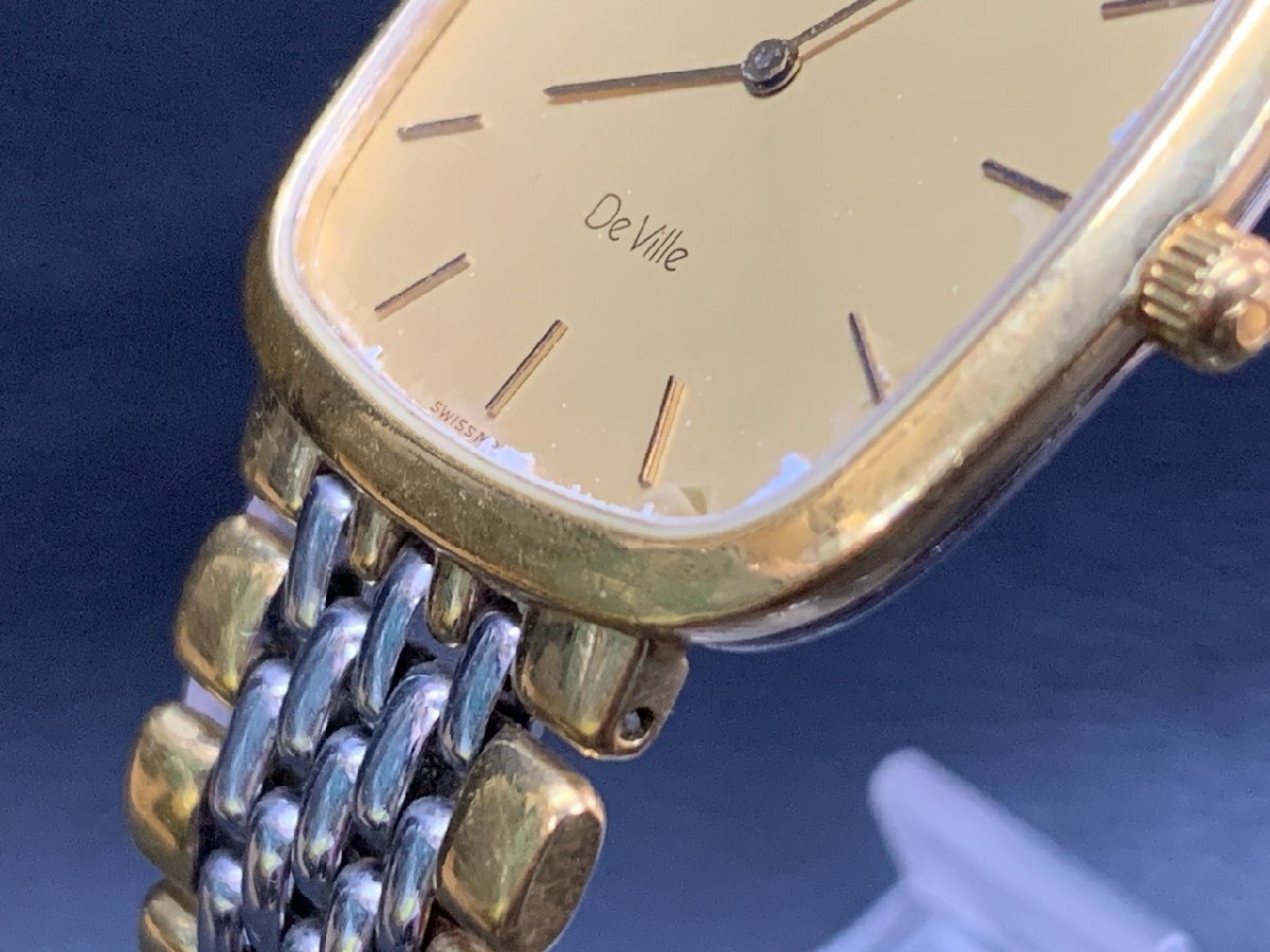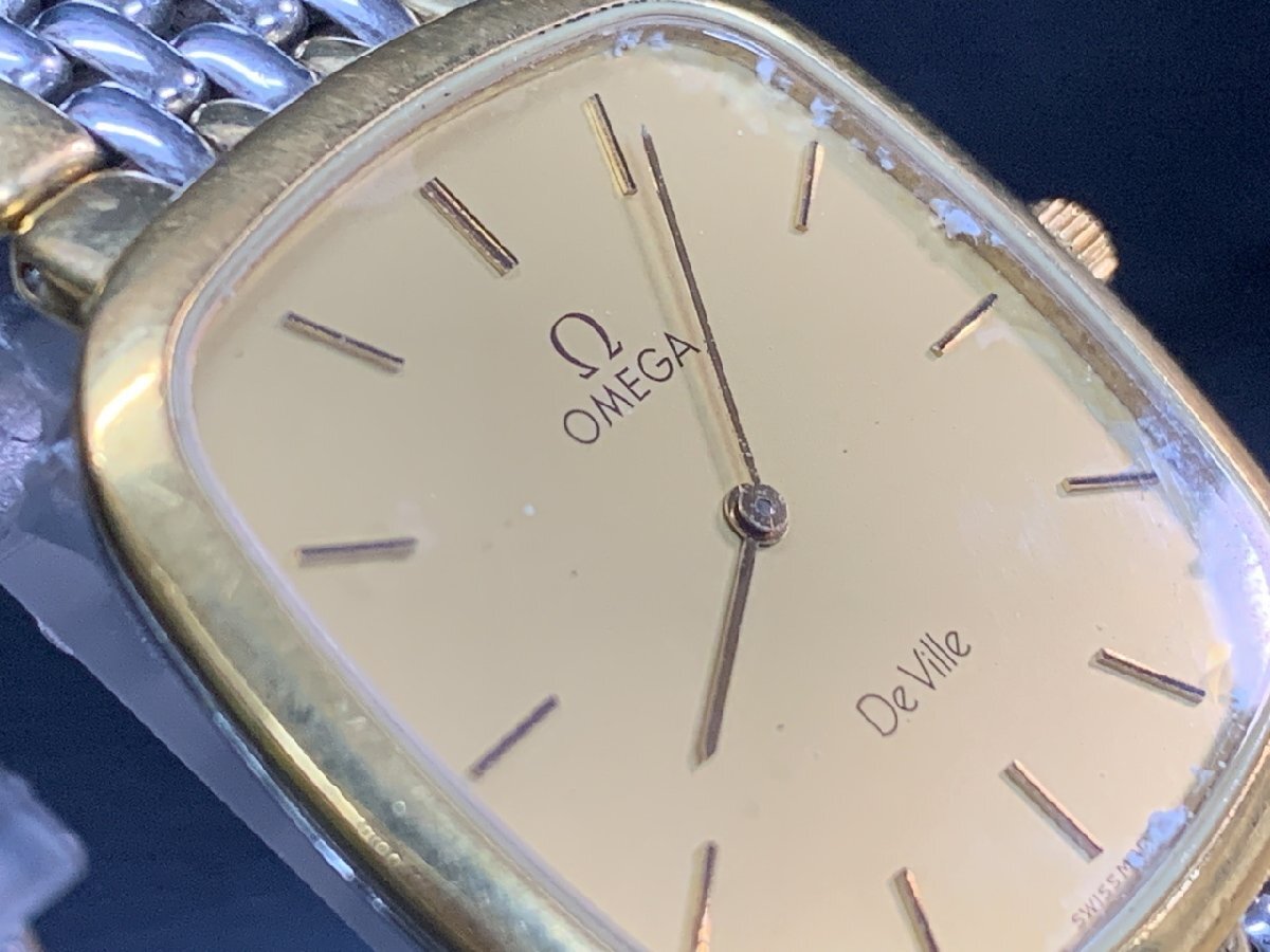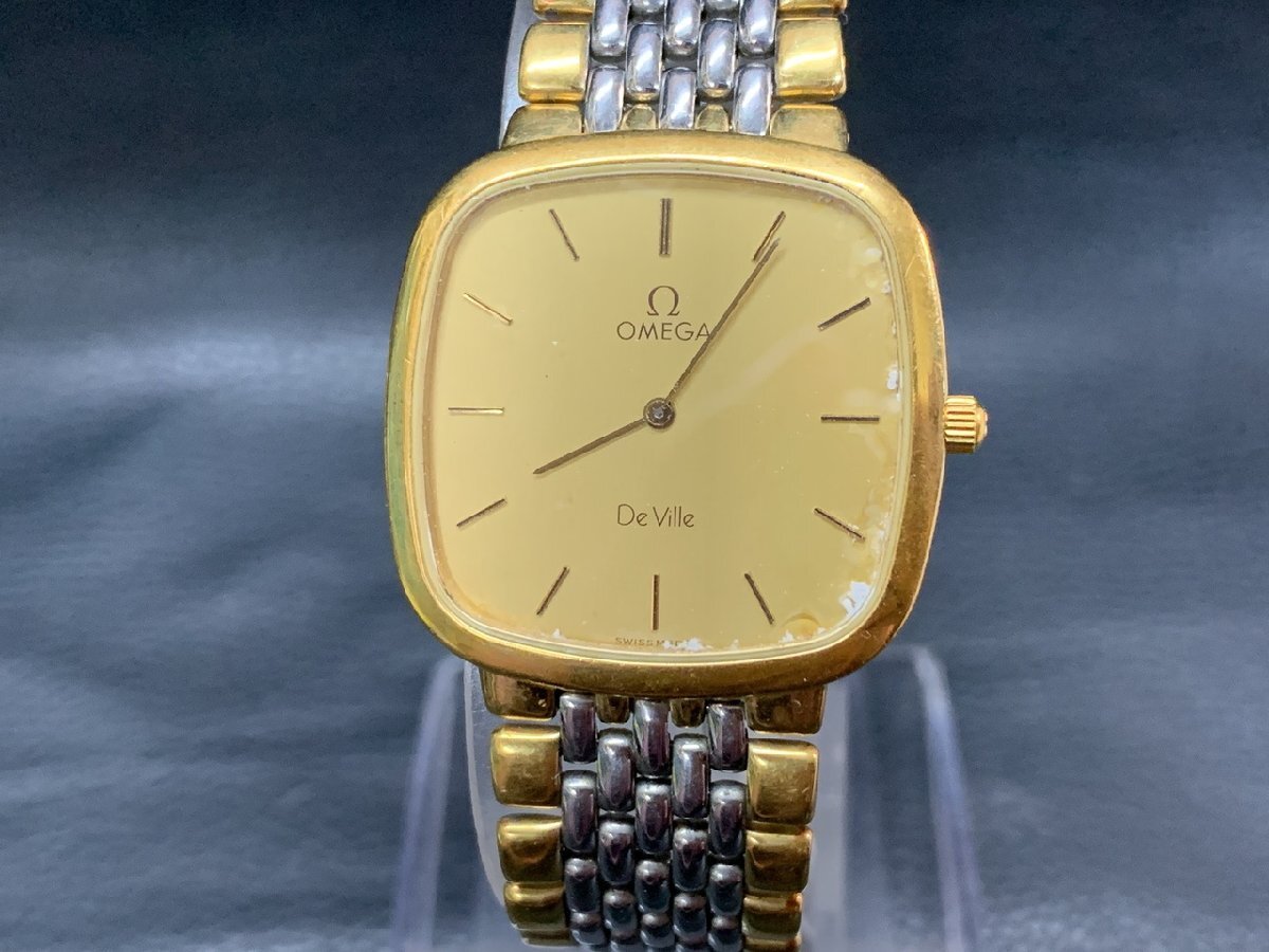 【N-8139】1円 オメガ OMEGA デビル DEVILLE メンズ 腕時計 クオーツ QZ ゴールド スクエア ゴールド系 同梱可【千円市場】