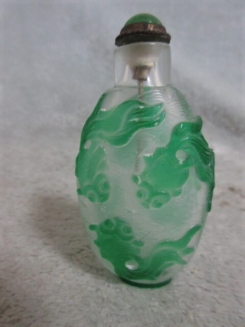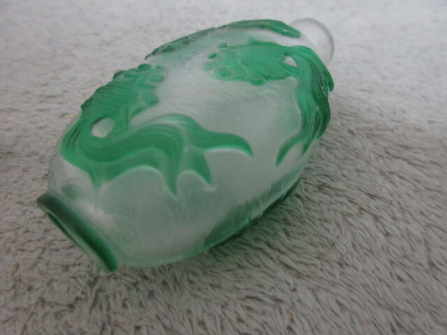 ●美品●アンティーク 香水瓶 金魚 緑●美術工芸作品●ガラス工芸●6