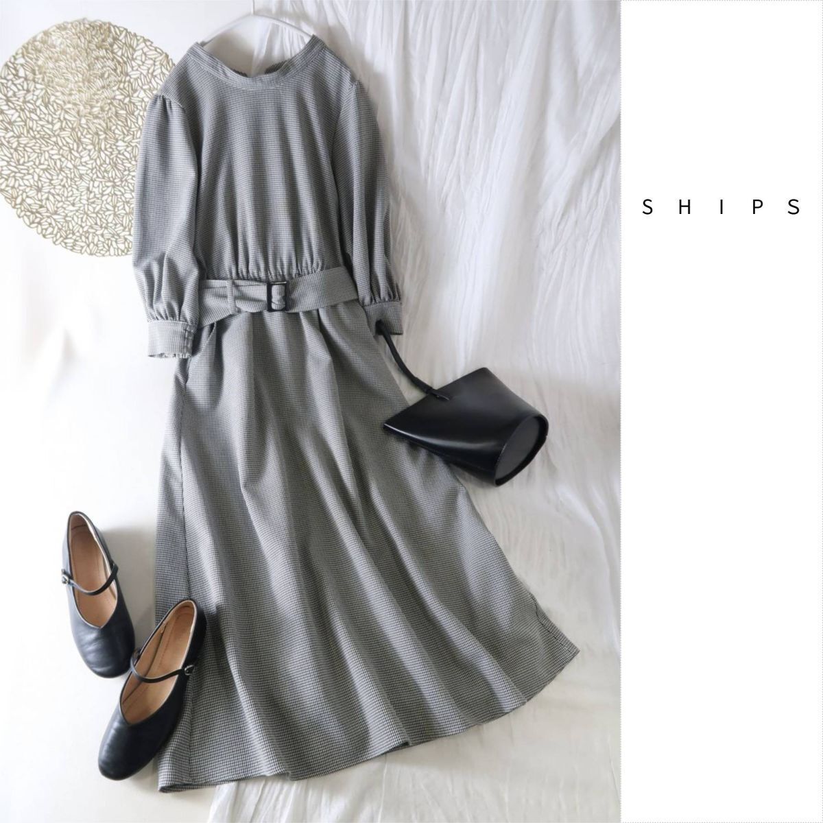 1.9万☆シップス SHIPS☆〈手洗い可能〉千鳥ハイネックワンピース 38サイズ 日本製☆M-B 6724