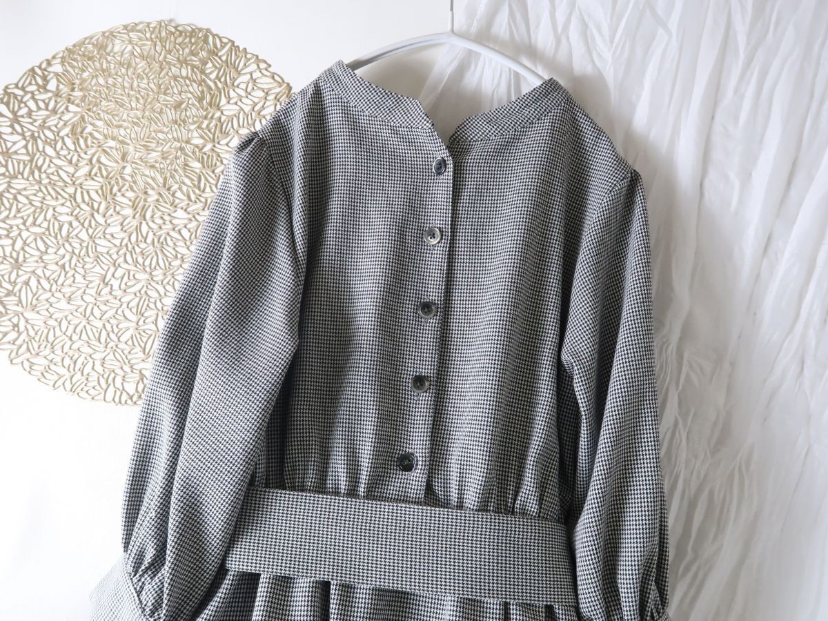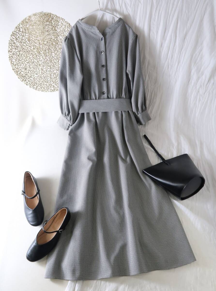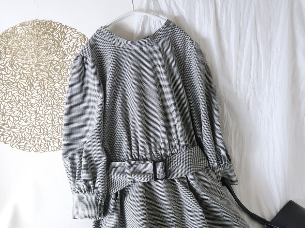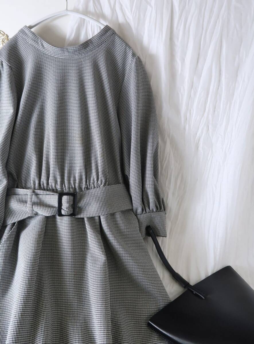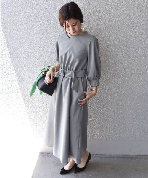 ハイネックに、ボリュームスリーブやウエストベルト等、シンプルになり過ぎずに上品なスタイルが決まるワンピース。
