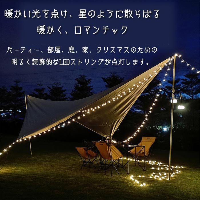 環境にやさしく、電気の消費量が少ないストリングライトは、優れた耐久性の銅線を採用し、安全、低消耗数時間使用しても低発熱で、使用寿命が長いLEDを採用しています。ライトの発光色はウォームホワイトで、光はかわいらしく、やわらかい雰囲気の照明効果を作り出すことができます。