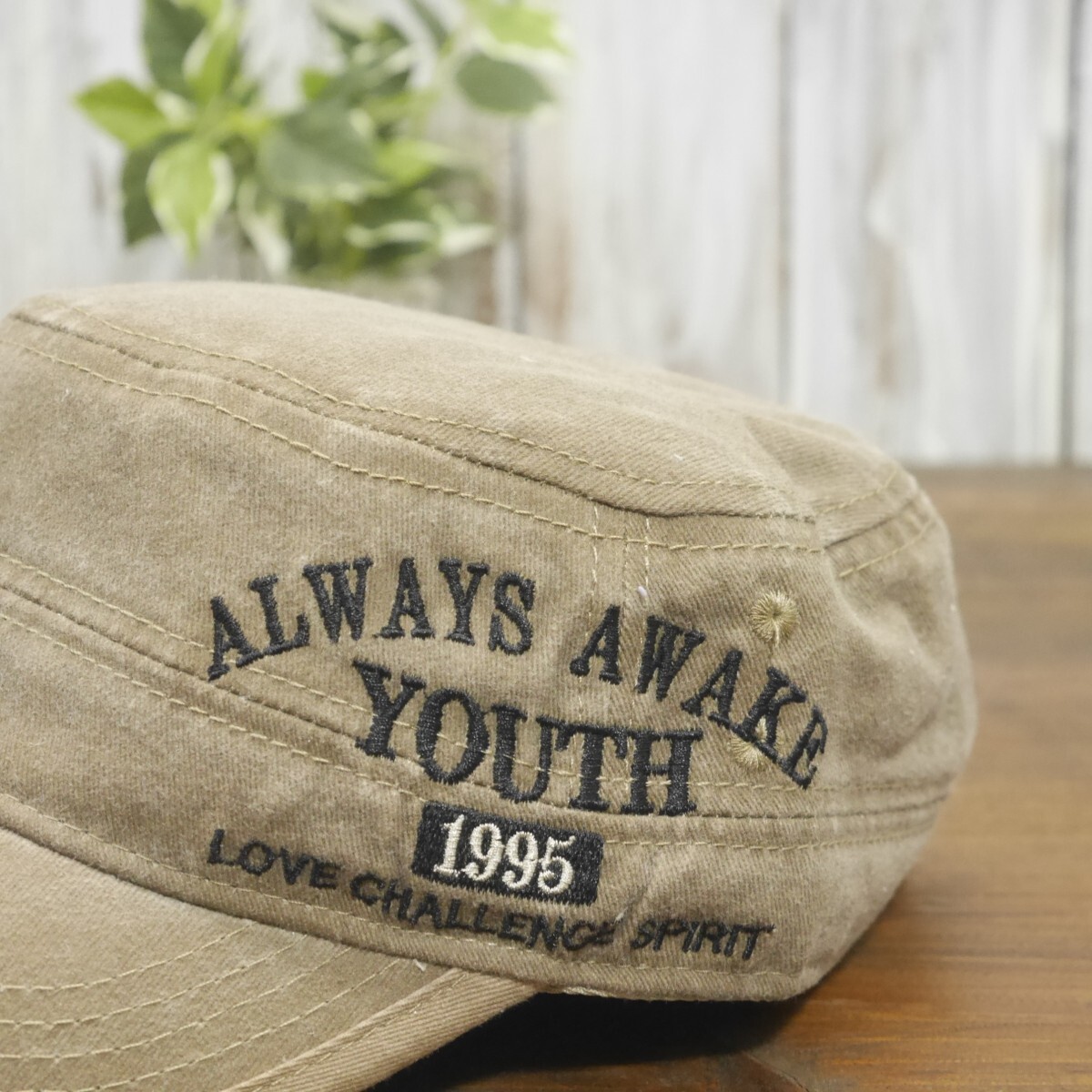 送料\450 ALWAYS AWAKE YOUTH ビンテージ ダメージ 色あせ ワークキャップ ベージュ サイズ調整可能 男女OK メンズ レディース