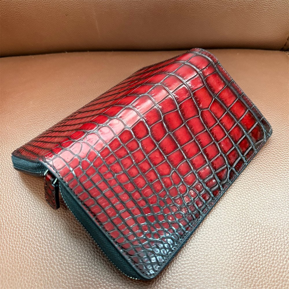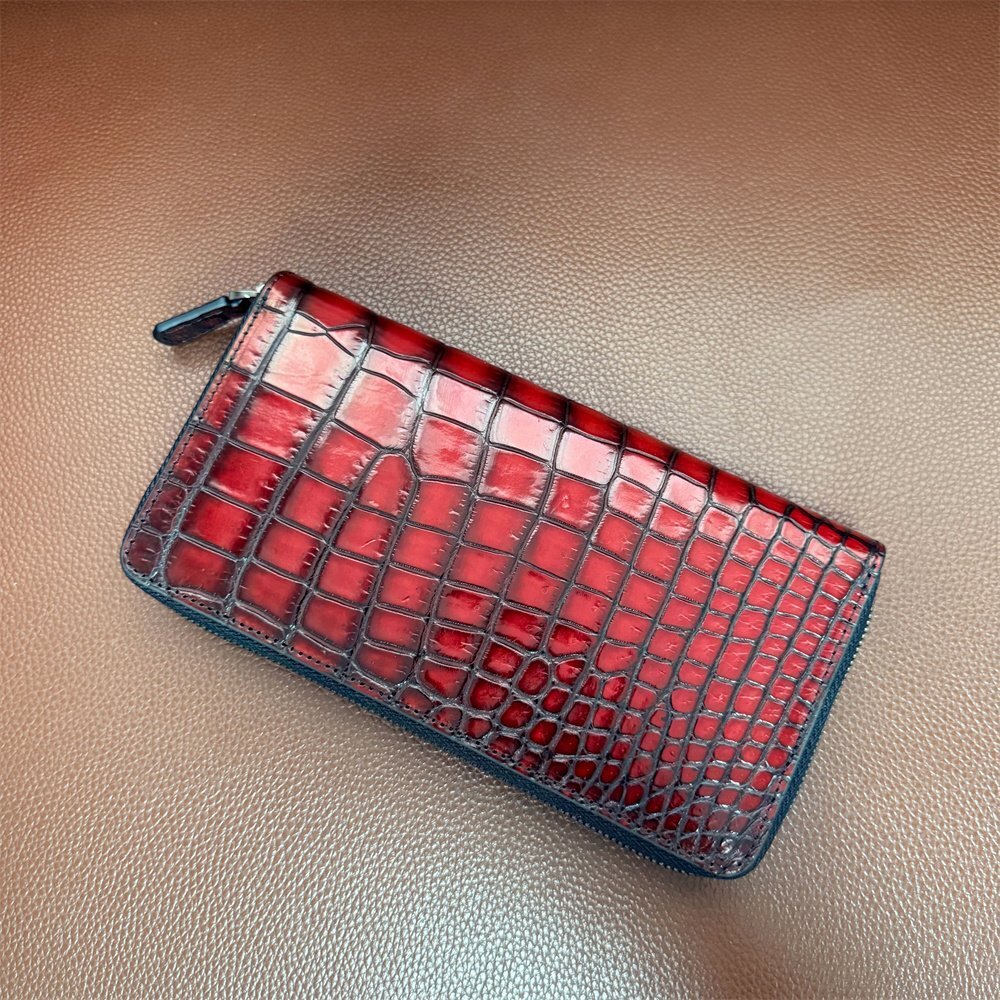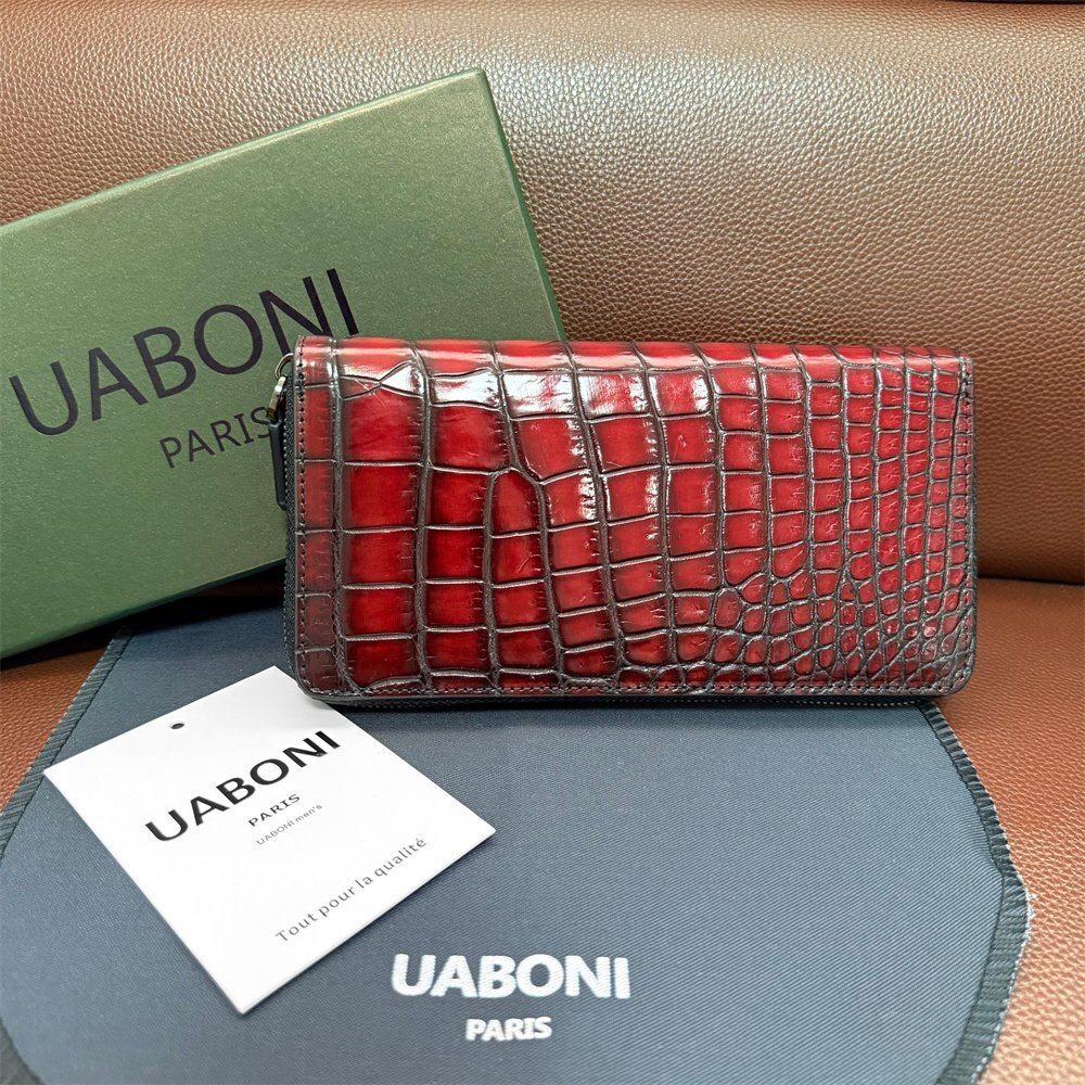 人気 限定EU製&定価68万◆UABONI*アメリカアリゲーター・ファスナー長財布◆高級 希少 手染 パティーヌ クロコ 本革 ワニ革 レザー メンズ