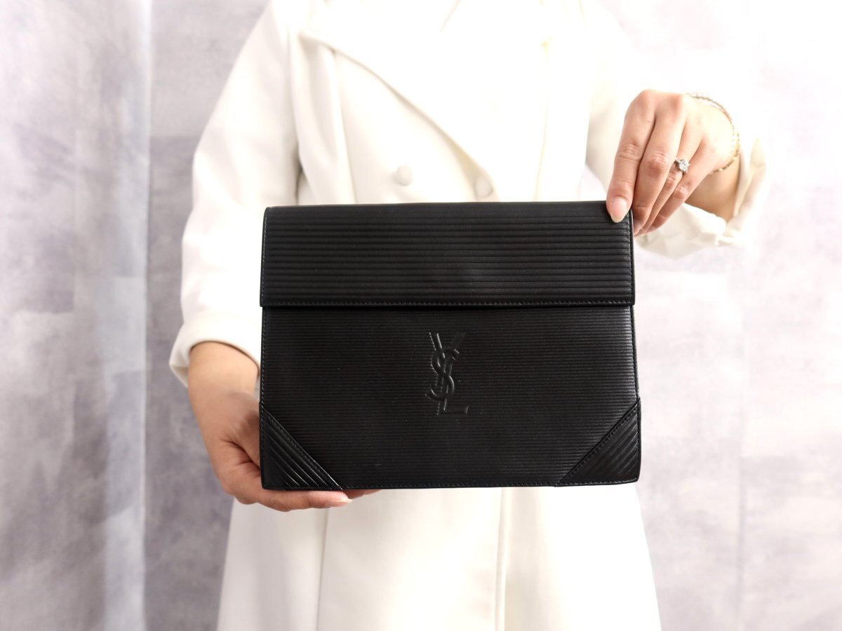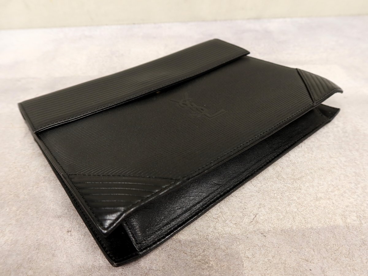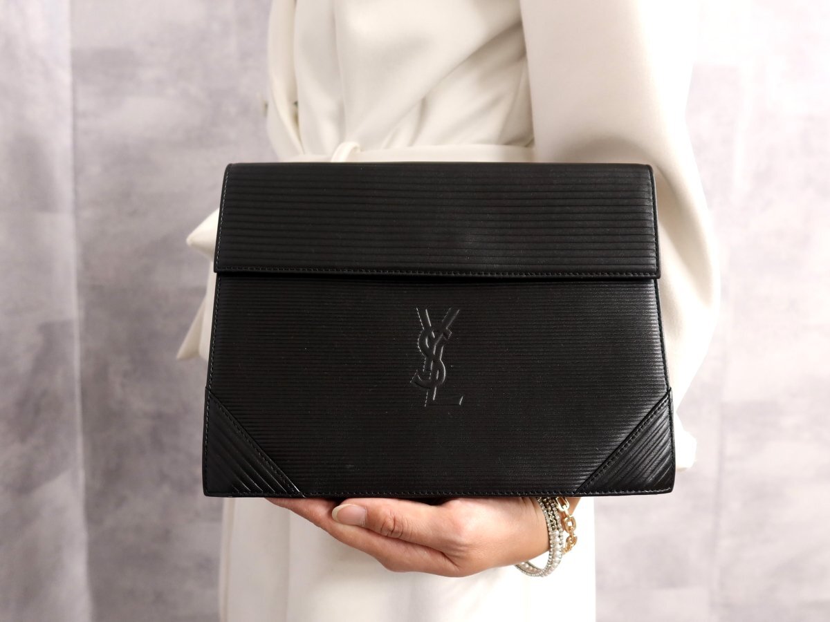●超美品●YSL Yves Saint-Laurent イヴ・サンローラン●ロゴ型押し●カーフ レザー 本革●セカンド クラッチ バッグ●黒●かばん●Js63008