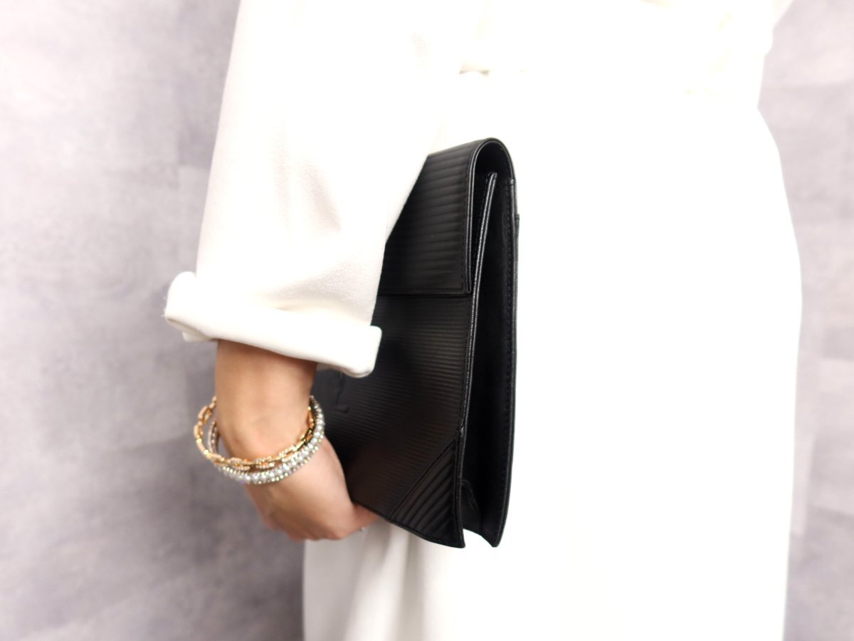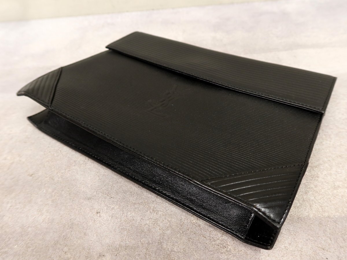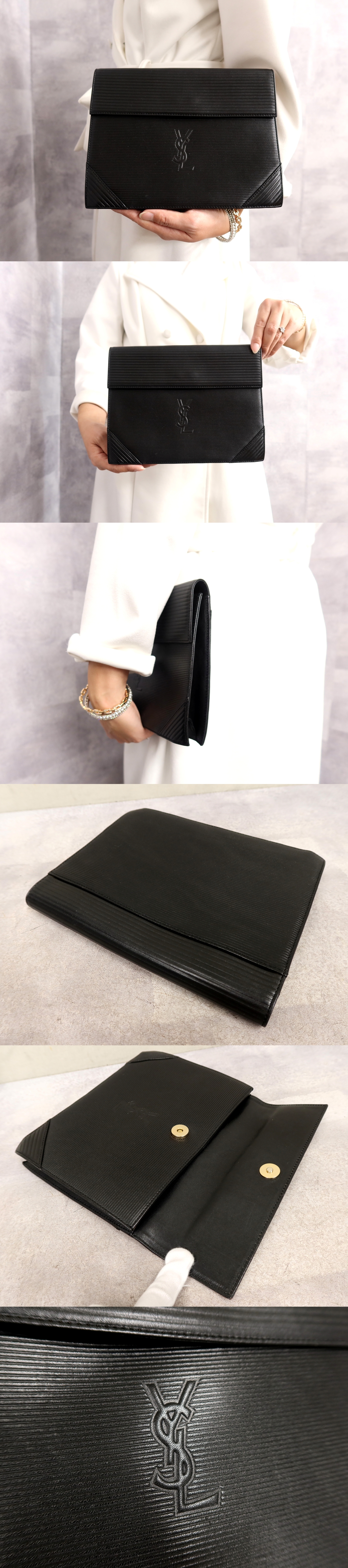 ●超美品●YSL Yves Saint-Laurent イヴ・サンローラン●ロゴ型押し●カーフ レザー 本革●セカンド クラッチ バッグ●黒●かばん●Js63008