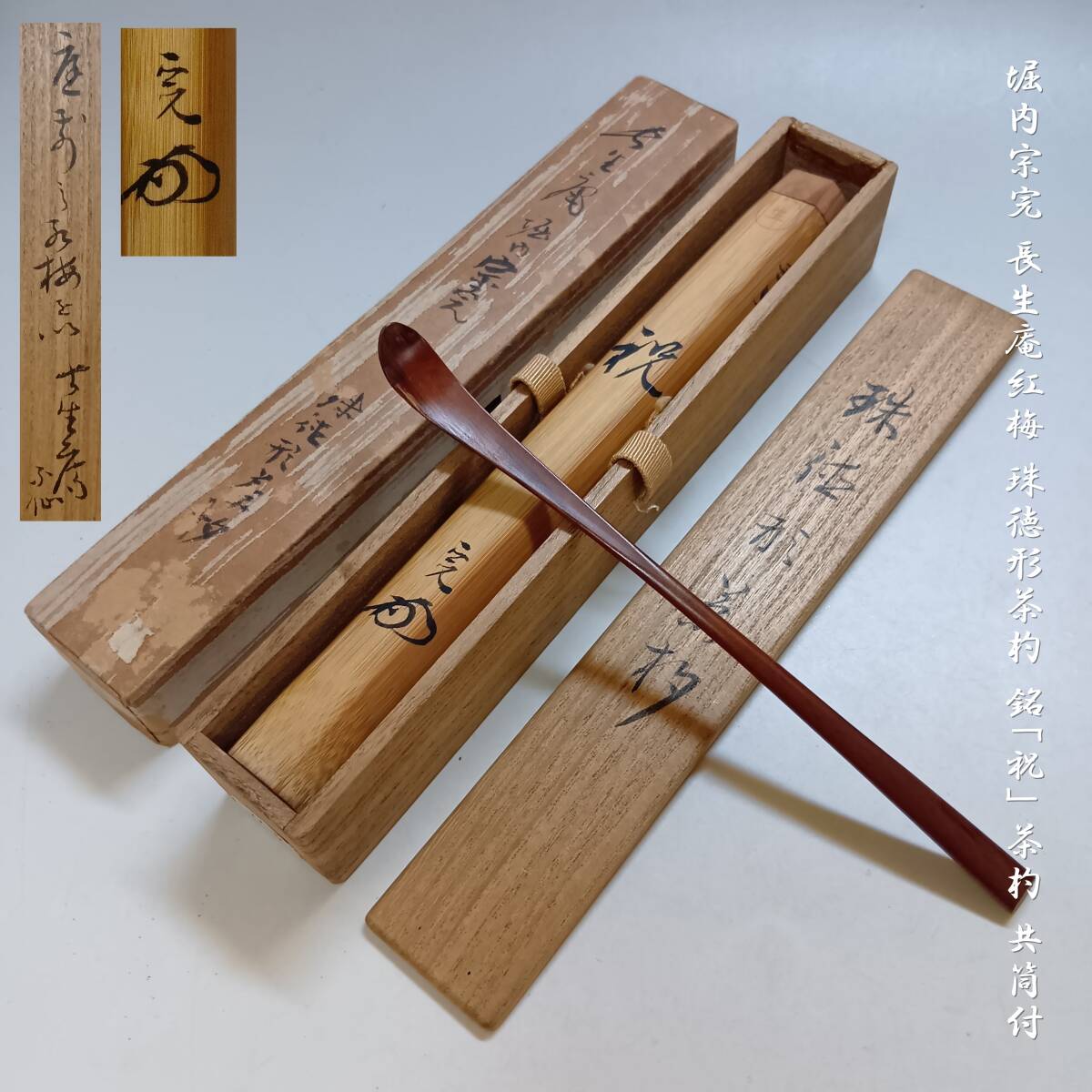 【B-51】堀内宗完 長生庵紅梅 珠徳形茶杓 銘「祝」 茶杓 共筒付 茶道具 | |||