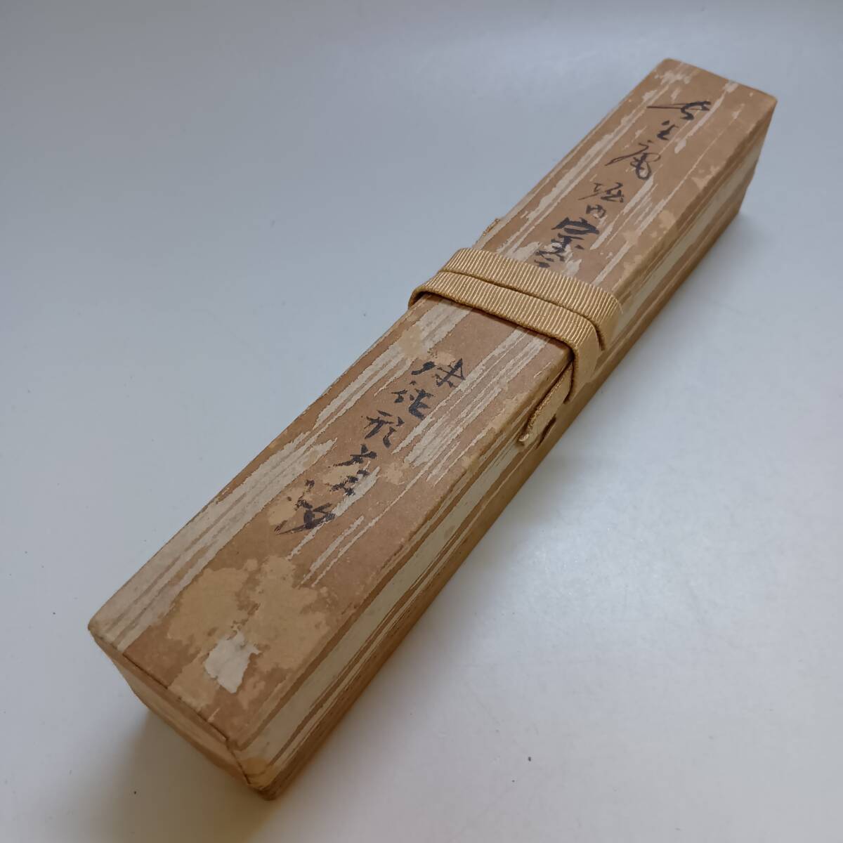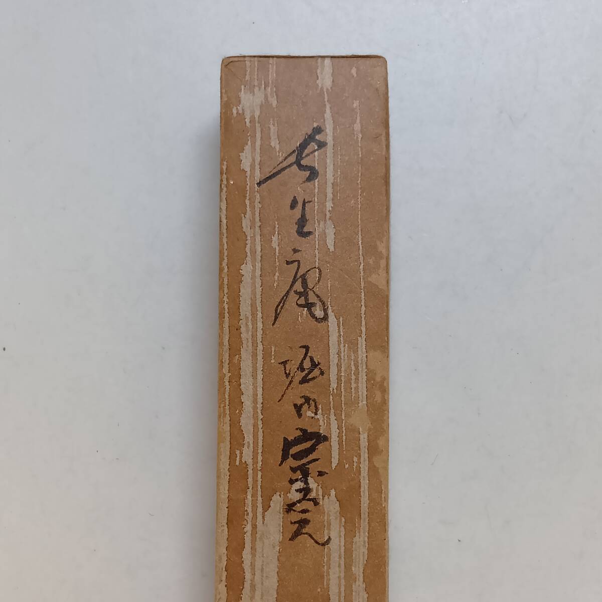 | ◆ご入札、ご落札前に必ず下記の注意事項をお読みください◆ (ご落札後は注意事項に同意頂いたものとさせて頂きます。) ●サイズ:全長約17cm×最大幅約1.2cm ※茶人として収集したお茶道具を出品させて頂いております。その為、正式な真贋は行っておりません。いずれもお茶席で使用していますが、なかには未使用に近いものもございます。大切にして頂ける方にお譲りいたします。 陶製のものに関しては目視で「欠け」や「スレ」等があれば、記載させて頂きますが、基本的には写真にてご判断頂いた上、慎重なご入札をお願い致します。 (美品や完品をお求めの方、細かいところが気になる方は入札をお控え下さい。) ※外箱にはどれも保管時の経年変化によるスレ、変色、汚れなどがみられます。 内側の包み紙(布)等は、敢えて古いままで発送致しますが(経年変化による変色やシミがみられるものがあります)、傷みが大きいものに関しては、梱包材を変えて発送させて頂く場合もございます。 ※不明な点などは、必ずご落札前にご質問下さい。 ご落札後の商品状態に関するご質問や、それによるキャンセルはご遠慮下さい。 ※お品の性質上、原則ノークレーム・ノーリターンでお願い致します。 ※発送方法に関して、下記にも記載させて頂いております発送方法(匿名発送)以外はお受けいたしません。 ※匿名発送につき、領収書は発行致しません。 必要な場合は、ヤフーかんたん決済のご利用明細書を印刷してご対応をお願いします。 注意事項+++ ●ご落札後、5日以内にご連絡、ご入金頂けない場合は大変残念ですが、キャンセルとさせて頂きます。(キャンセル前のご連絡は致しませんのでお気を付け下さい。) ●ご落札者様のご依頼によるキャンセルについては、「ご落札者様の都合」によるキャンセルとさせて頂きます。 ご入札後、「入札取消」のご依頼を頂いても、終了時間前に対応出来ないこともあり、その場合も「ご落札者様都合」のキャンセルとさせて頂きますので、慎重なご入札をお願い致します。(落札された時点でご購入頂けなくとも、ヤフーの「落札システム使用料(落札価格の約10%)」がかかる為、何卒ご了承下さいませ。) ●発送は基本、送料込みの匿名発送とさせて頂いております。その為、ご落札後に宛先変更(取引ナビに表示されているお届け先情報)は変更出来ません。 ※必ずご落札前に、ヤフーにご登録のお届け先情報を変更された上でご入札下さい。 (もしどうしても変更が必要な場合は、一旦「落札者様都合のキャンセル」としたうえで、再度のご落札をお願い致します。※この場合、ヤフーのシステム上「悪い評価」が自動でつくこととなります。くれぐれもお気を付け下さい。) また、営業所留めやコンビニ受取りをご希望の場合、ご落札者様のほうでお手続きが必要となります。下記のヤフオク!ヘルプのサイトでご確認下さい。 →https://support.yahoo-net.jp/PccAuctions/s/article/H000013307 ●基本的にお取引後には「評価」を入れさせて頂きます。 評価をご希望でない方は事前に取引メッセージよりお知らせ下さい。 ●お値引きについては対応しておりませんので、値引き交渉はご遠慮下さい。 (質問欄よりのお値引き交渉に対しては回答を控えさせて頂きます。) ●出品させて頂いているお品は、全て自宅保管のお品となります。 美品や完品をお求めの方、細かいところが気になる方はご入札をお控え下さい。 ●発送時の梱包材はリサイクル品を使用させて頂くこともあり、出品価格を安価にする為、簡易包装で発送させて頂きます。ご理解頂けますと幸いです。 ●配送中のトラブル(破損等)があった場合は、お受取りの連絡をせず、まずはヤフオク!にご連絡をお願い致します。(補償については下記のサイトでご確認下さい。) →https://support.yahoo-net.jp/PccAuctions/s/article/H000005188 | |||
