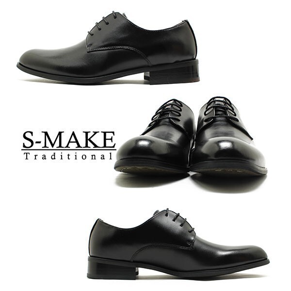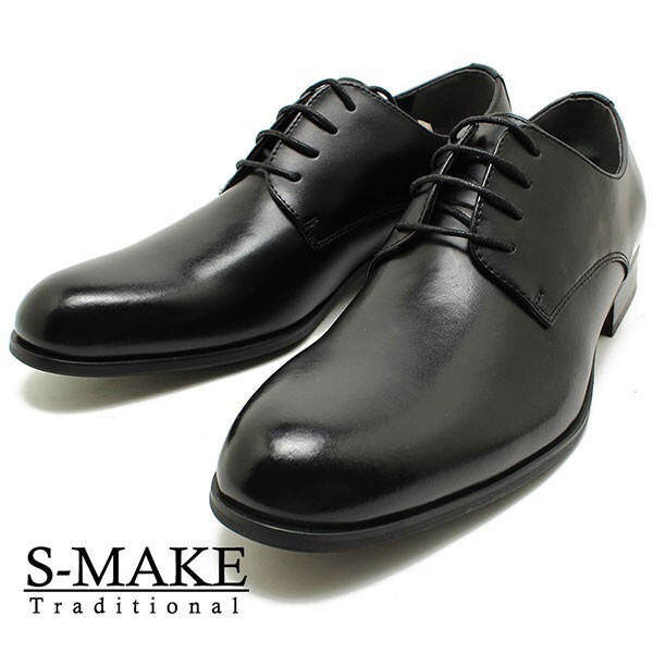 箱付き新品★日本製x本革/S-MAKE★プレーントゥ/ビジネスシューズ【25.0/EEE/黒】歩きやすい!名ブランド品質◆n7319