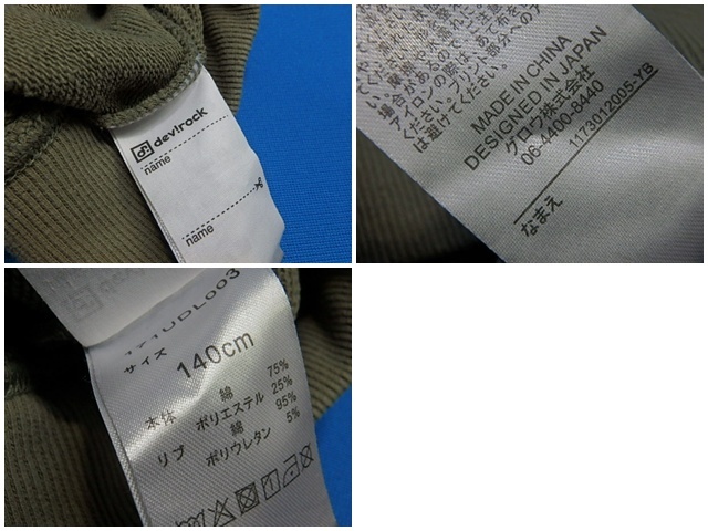 ny1-25-1202-3 DEVILOCK トレーナー 140サイズ グリーン系 子供服 男の子 子ども服 キッズ 中古
