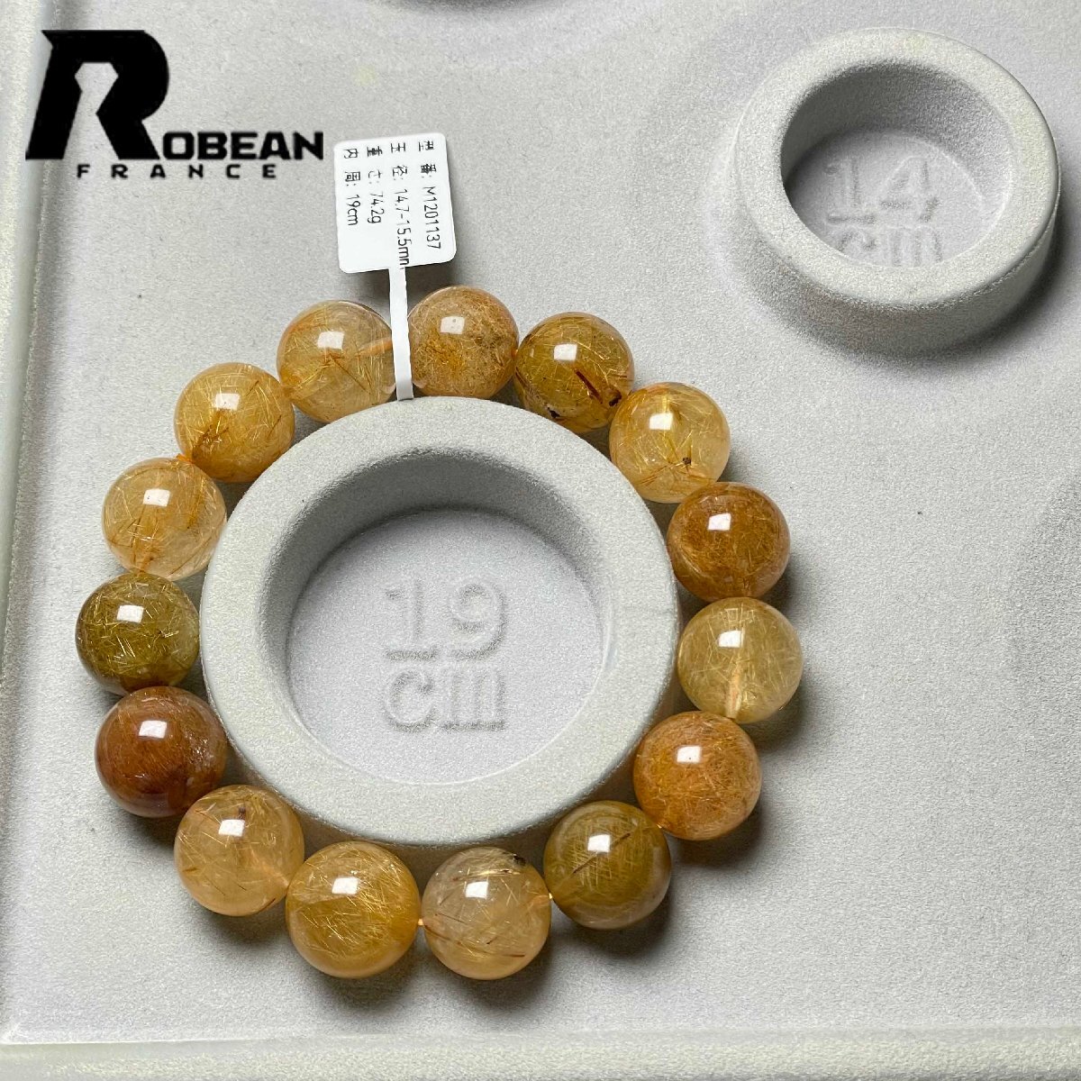 【一点限り】レア EU製 定価21万円★ROBEAN・ビーナスルチルクォーツ★ブレスレット パワーストーン 天然石 綺麗 金運 お守り 14.7-15.5mm