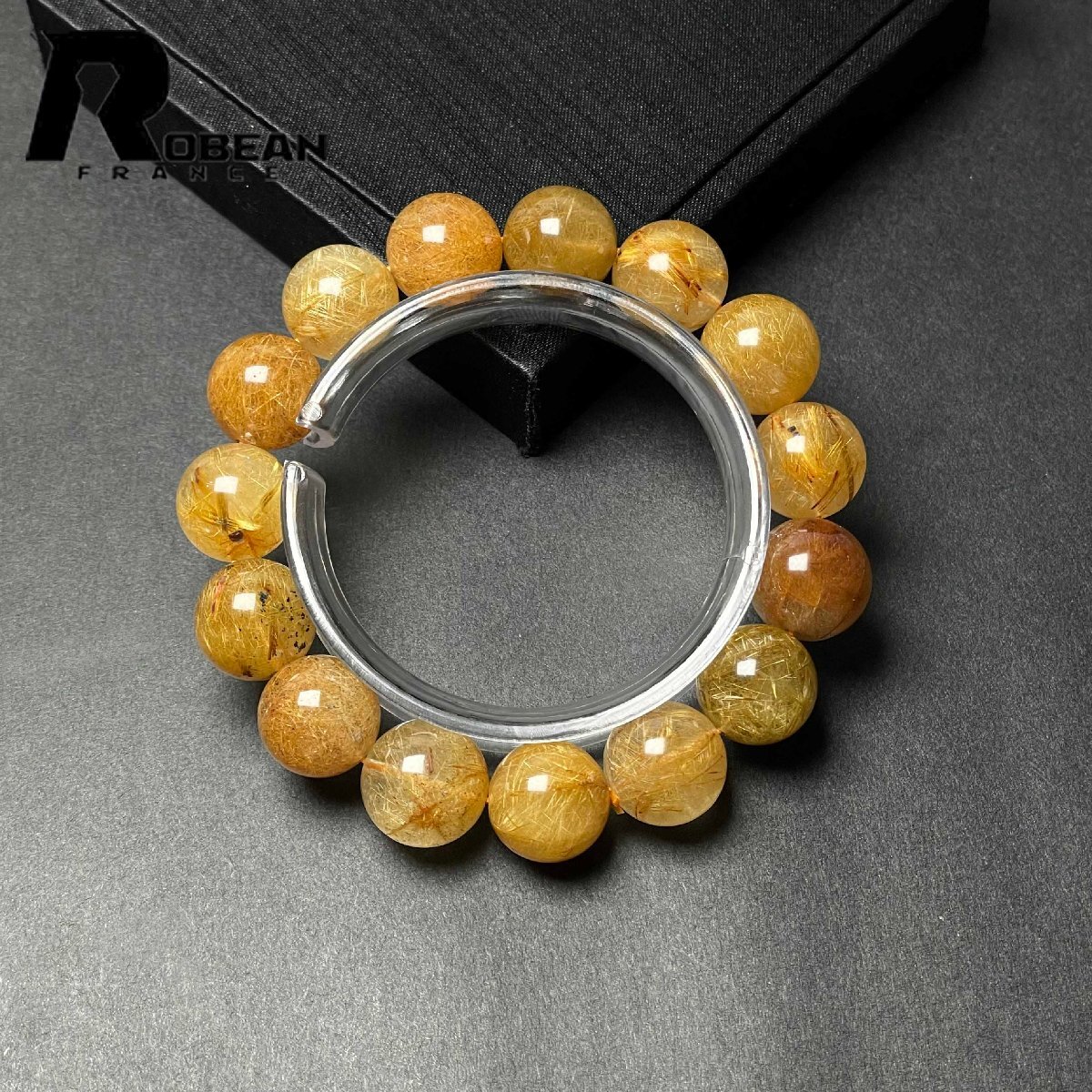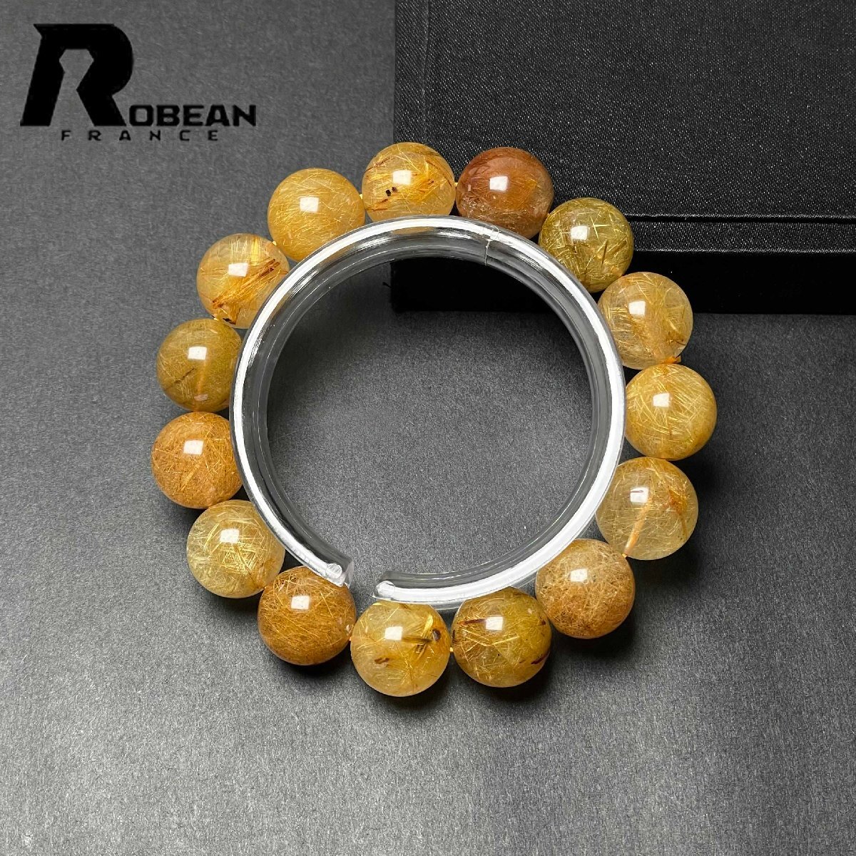 【一点限り】EU製 定価21万円★ROBEAN・ビーナスルチルクォーツ★ブレスレット パワーストーン 天然石 金運 お守り 14.7-15.5mm M1201137