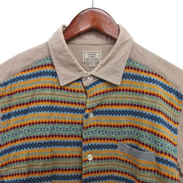 グリーンレーベルリラクシング ユナイテッドアローズ green label relaxing コーデュロイ ステンカラー シャツ カジュアル ニット