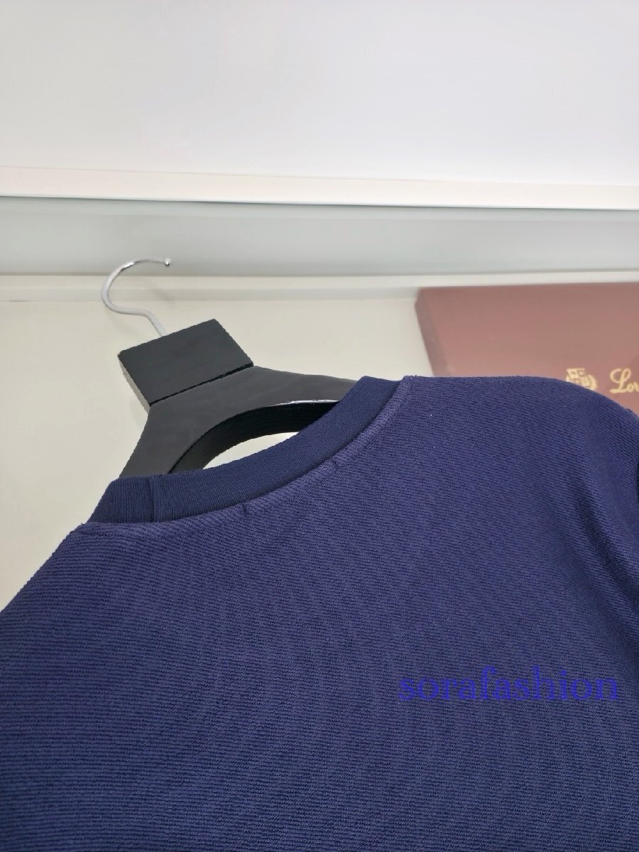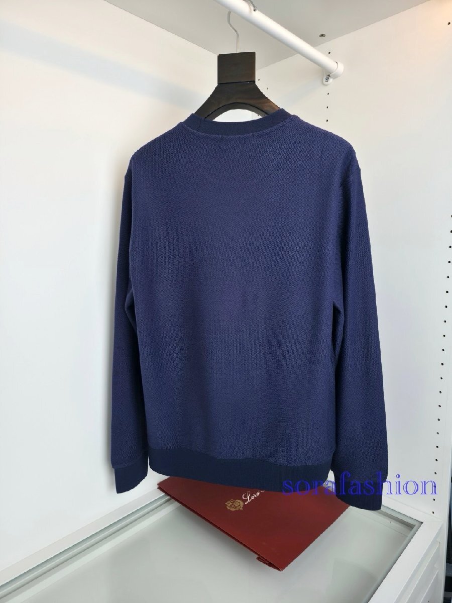 Loro Piana ロロピアーナ メンズプルオーバー スウェットT-シャツ ネイビー XL トップス トレーナー 紳士服 丸首 綿・シルク入り 裏毛