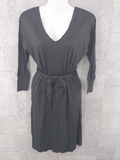 ◇ DES PRES デ プレ リボン付 長袖 膝丈 ワンピース 1 ブラック *