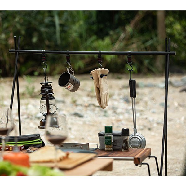 各種小物や食器などを掛けられる可動式のフックが付属し、アイデア次第で見た目もオシャレに。