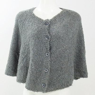 | モヘヤ混でモコモコとした見た目が可愛らしい♪ 少しラメ糸の入った編みも◎ シンプルなシルエットでコーディネートがしやすい オススメのアイテムです 着丈約49cm 裄丈59約cm 【サイズ】:(38) 【素 材】:(アクリル37%羊毛31%ナイロン18%ポリエステル8%モヘヤ6%) 【 色 】:(グレー) 【程 度】:(AB) **管理番号** 2507-20150427-002 499 079 | ||||
