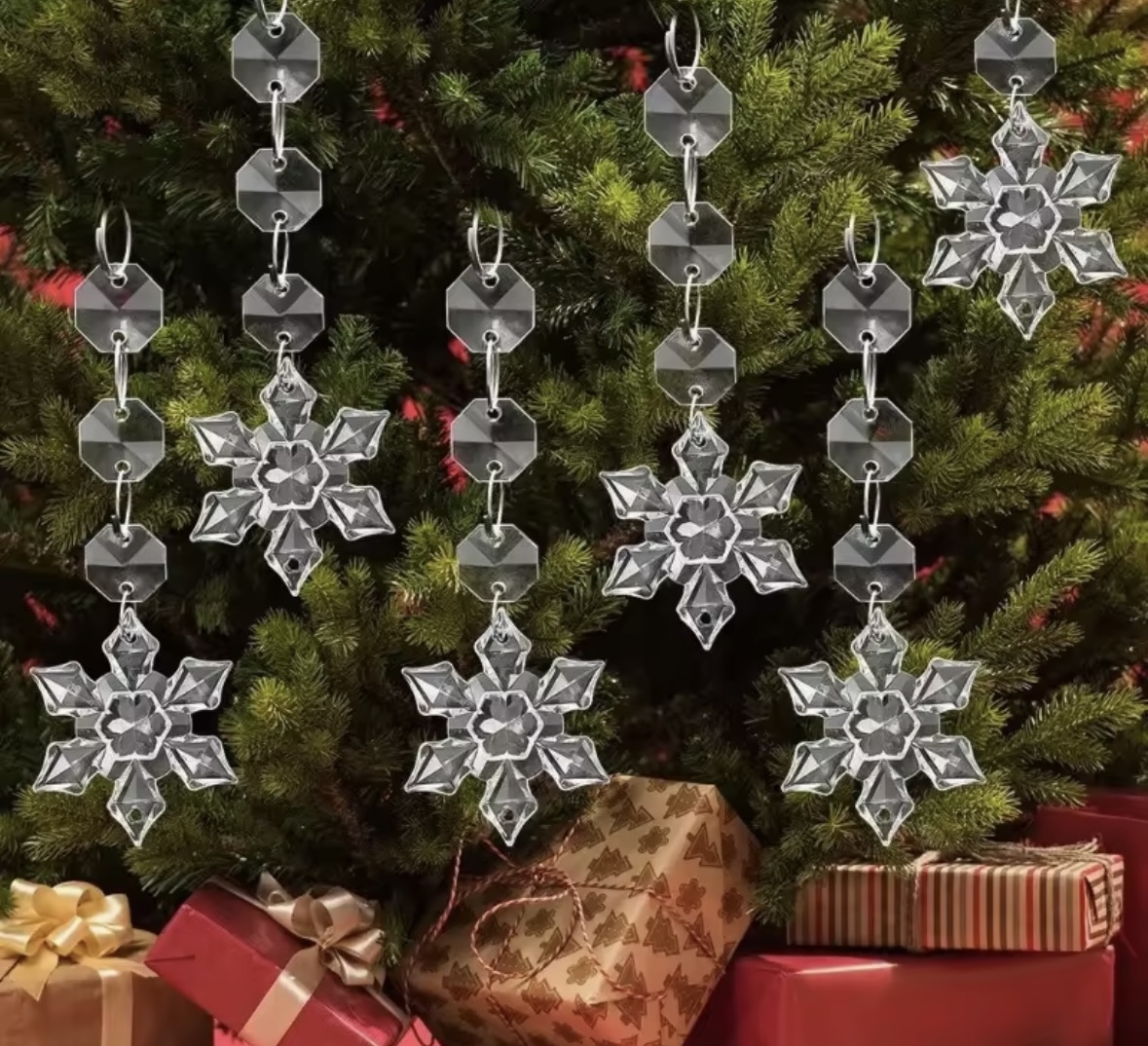 透明な雪の結晶オーナメント6個セット、クリスマスの飾り付けに最適です。