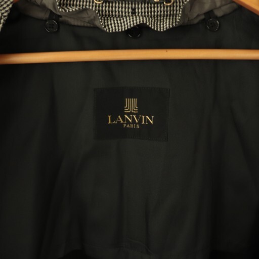 ランバン LANVIN ステンカラーコート 幾何学模様 シルク ブラック オフホワイト /DF ■GY53 メンズ