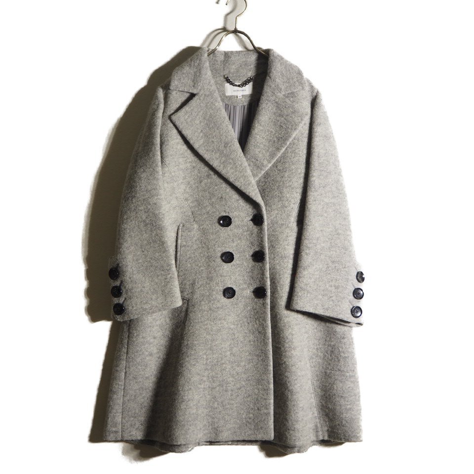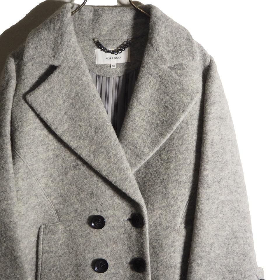 P8362H ▼AKIRANAKA アキラナカ▼ ダブルブレスト ウールコート グレー 36 / オーバーサイズ Aライン AW1617GR 秋冬
