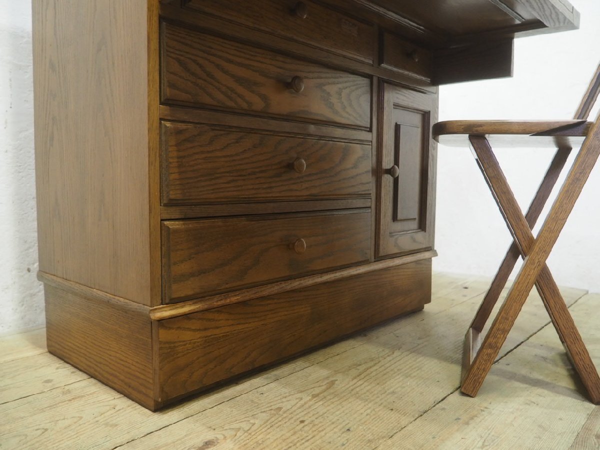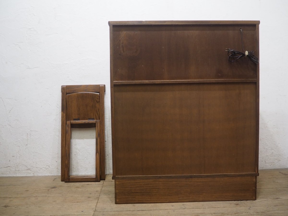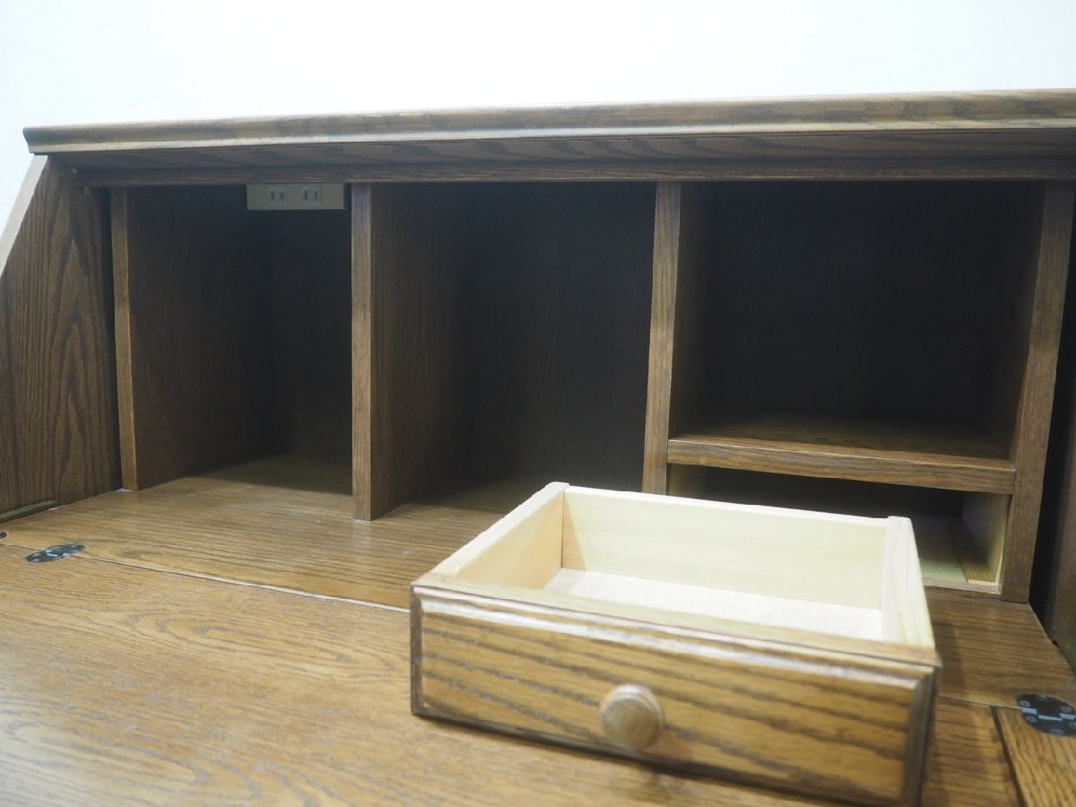 タ荷P0686◆H111cm×W91cm◆椅子付き◆希少デザインの古い木製ライティングデスク◆机 テーブル イス 飾り棚 ビューロー レトロP(ヤD)松