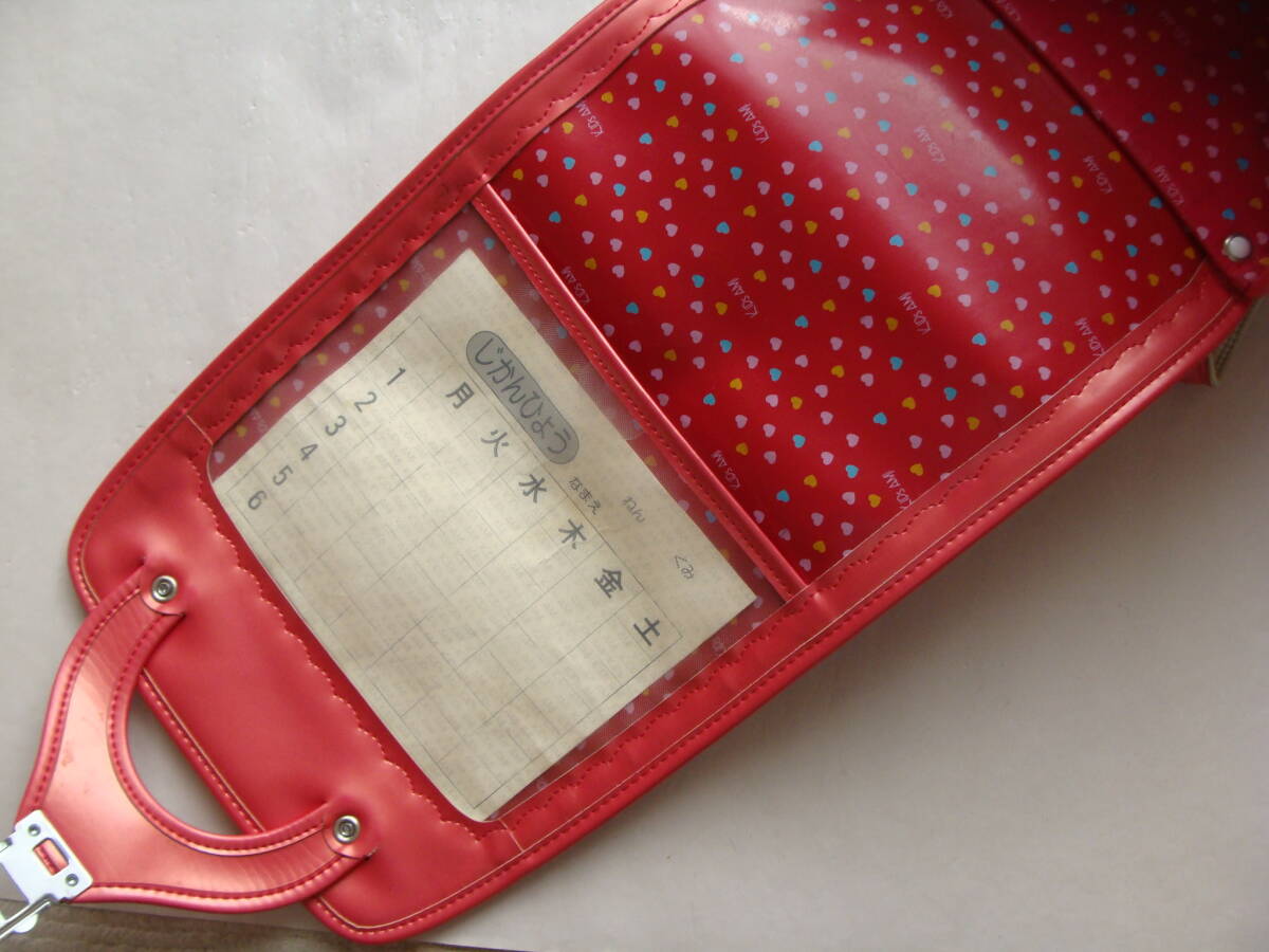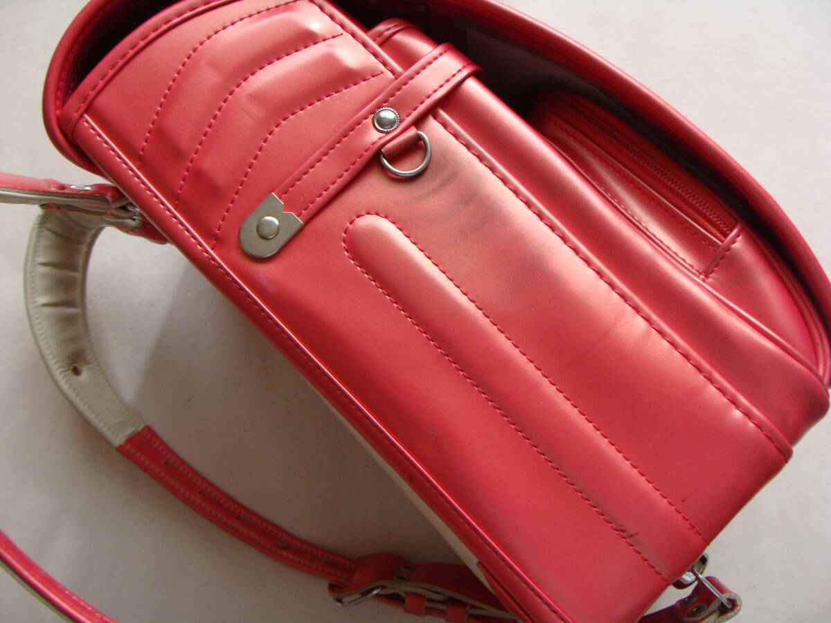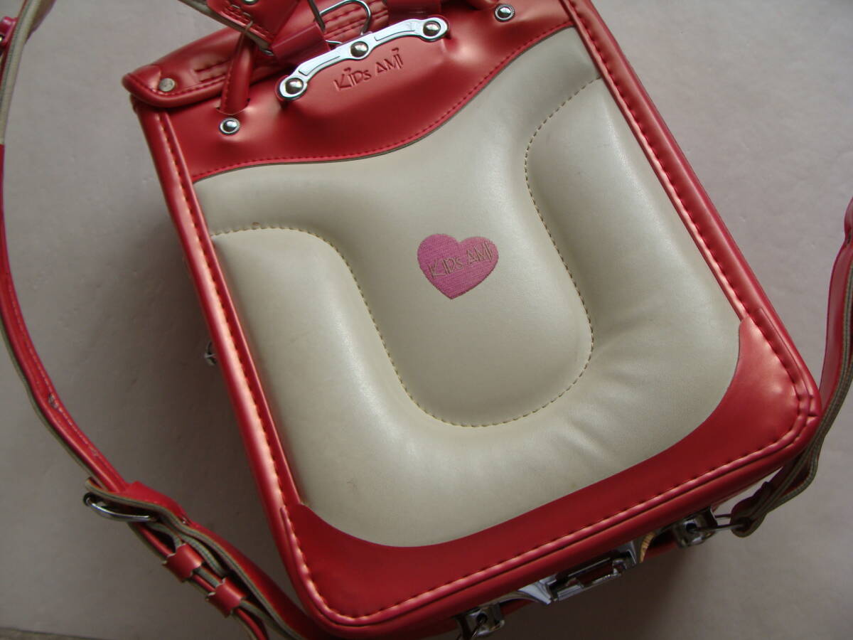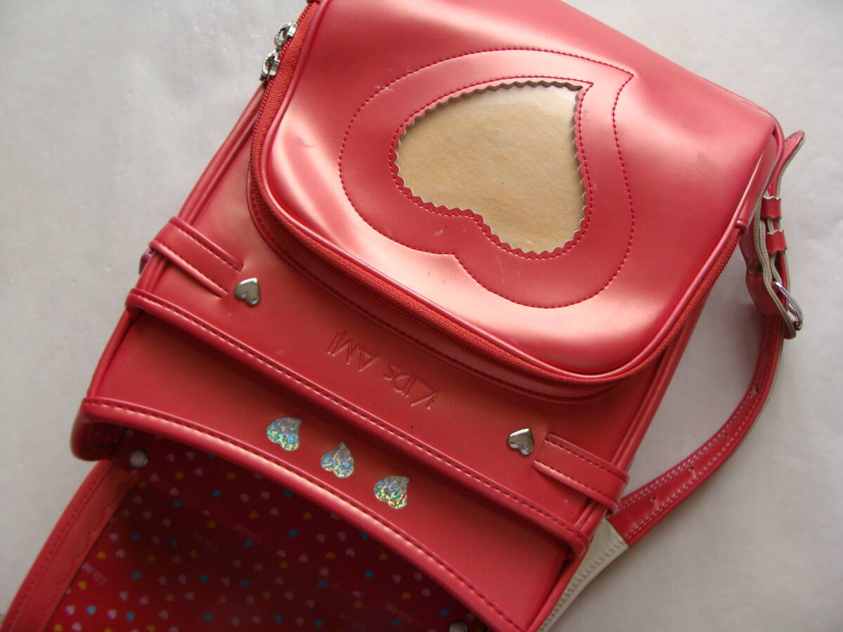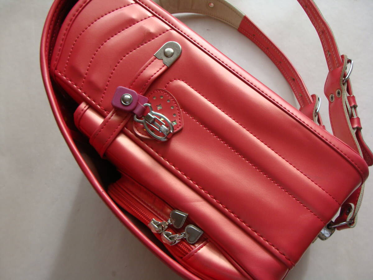 現状お渡し 中古ランドセル(オレンジレッド パール系)一定の使用感あり 日本製 ハートモチーフ 大きなダメージなし