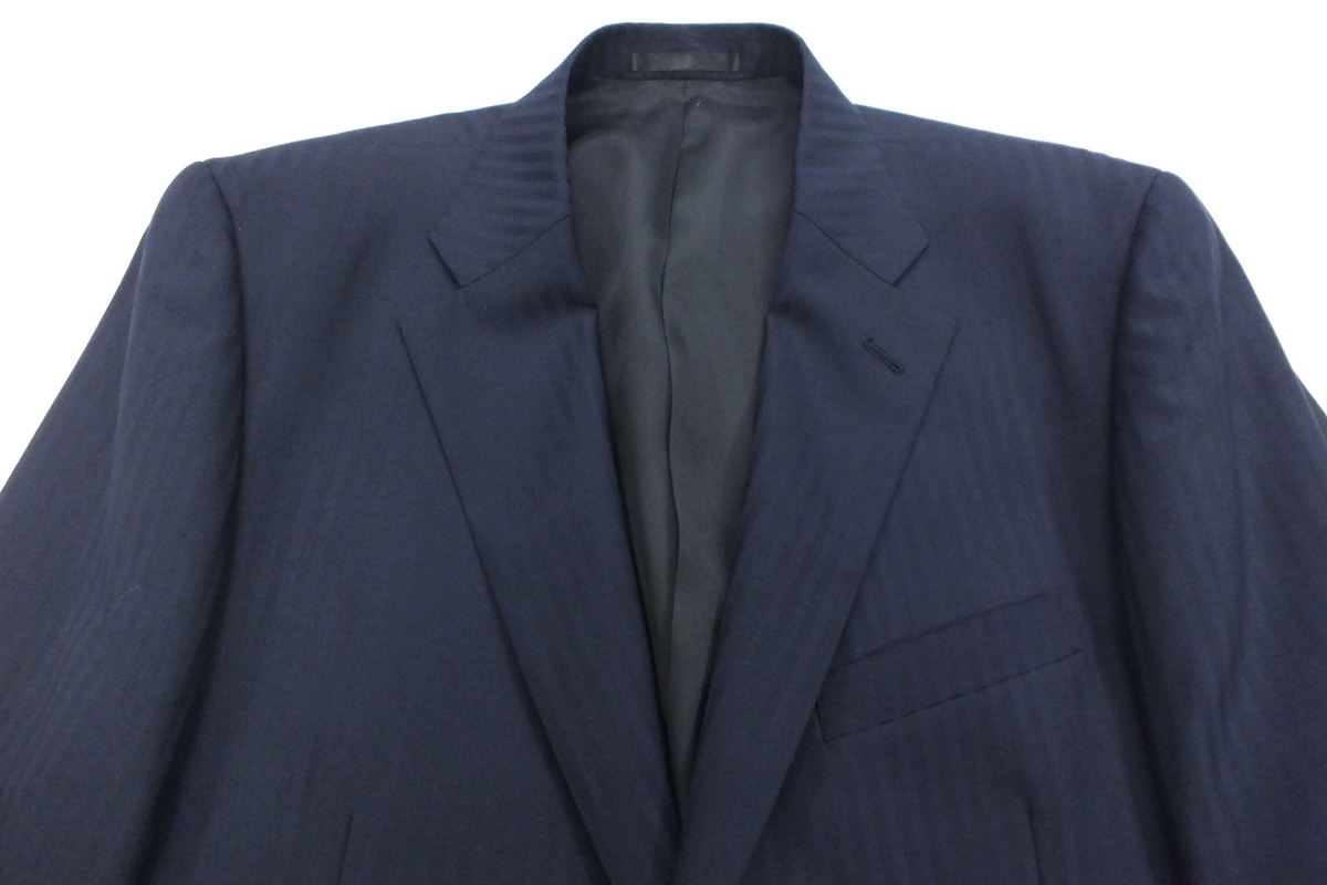 シーズン:秋冬春 サイズ:E6(胸回109・腰回109・身長175) 上着デザイン:シングル2ボタン ベンツ:センターベンツ 裏仕様:総裏仕様 パンツ:ワンタッグ膝あて付き 色:ネービー系 柄:無地感覚のドビー縞 表素材:毛50/ポリエステル50 胴裏:ポリエステル100 縫製:中国縫製 採寸の方法←ここをクリックしてください。 詳細な寸法 E5(胸囲106-腰回106-身長170) 上着部分:胸囲127・胴廻り114・着丈72・肩幅49.6・袖丈59 パンツ部分:ウエスト106・股上32・股下87・渡り巾38.5・膝巾26.6・裾巾22.8 E6(胸囲109-腰回109-身長175) 上着部分:胸囲129・胴廻り116・着丈74・肩幅50.4・袖丈60.5 パンツ部分:ウエスト109・股上32.5・股下89・渡り巾39・膝巾27・裾巾23.1 E7(胸囲112-腰回112-身長180) 上着部分:胸囲131・胴廻り116・着丈76・肩幅51.2・袖丈62 パンツ部分:ウエスト112・股上33・股下91・渡り巾39.5・膝巾27.4・裾巾23.4 注意)数字は何れもcmに成ります。 | ||||
