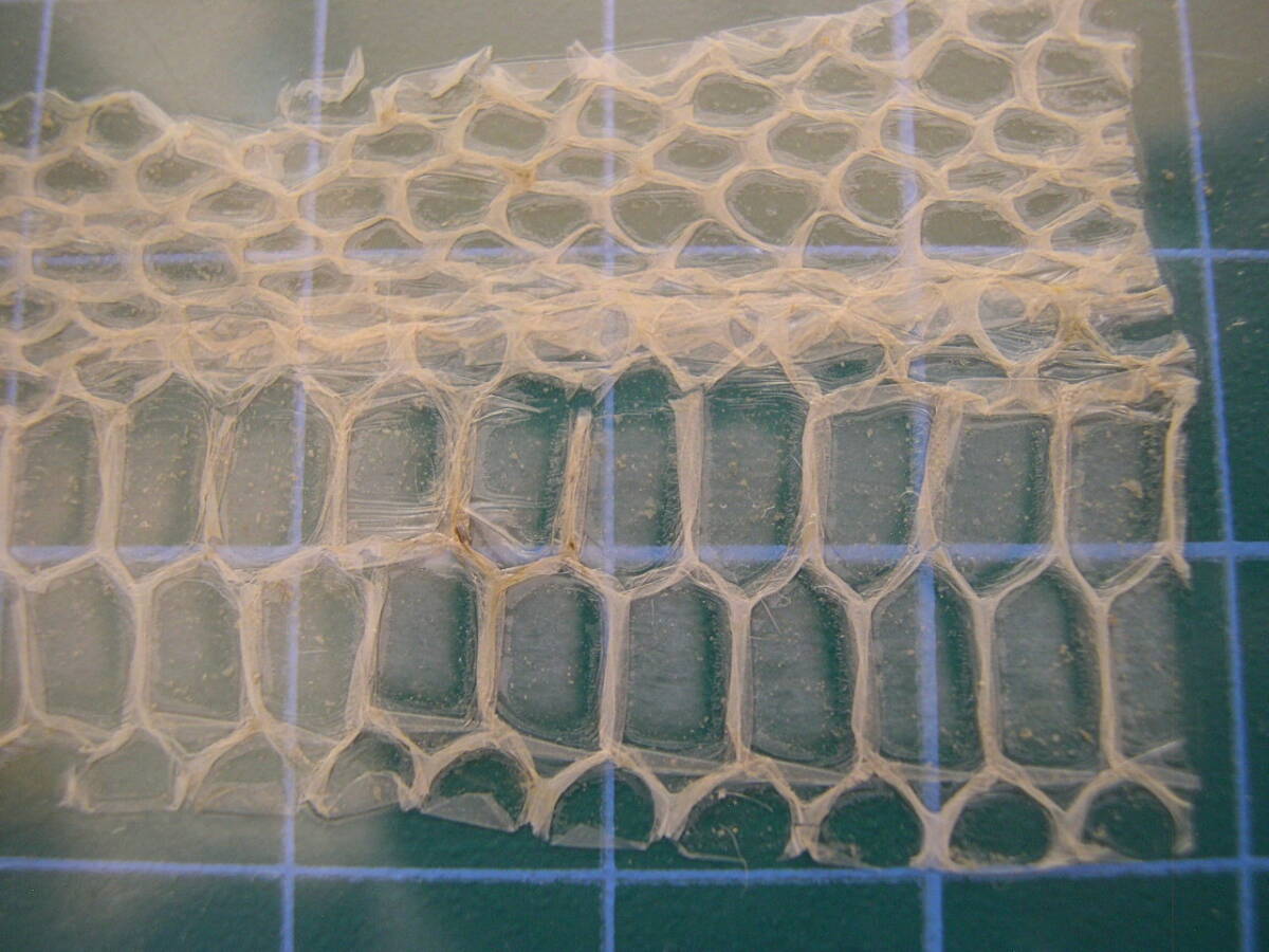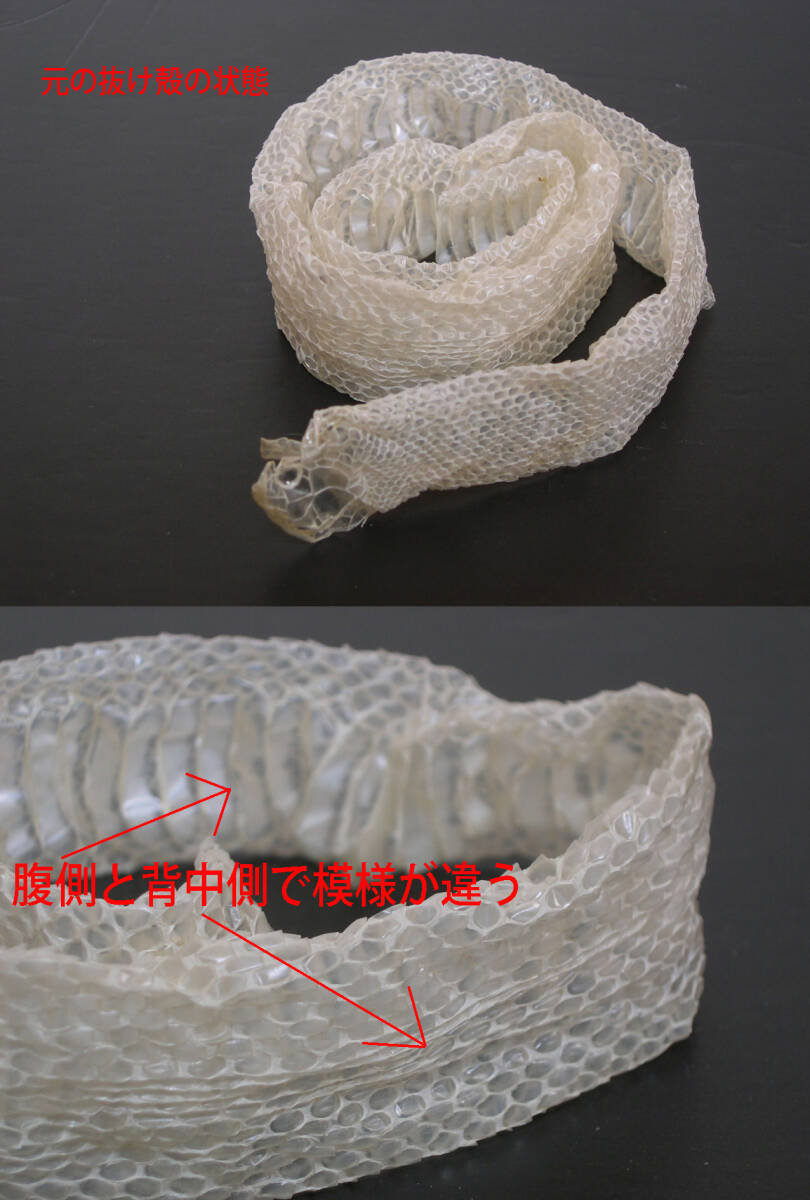 10番目の写真でお分かりのようにヘビ皮は背中と腹側で模様が違います。